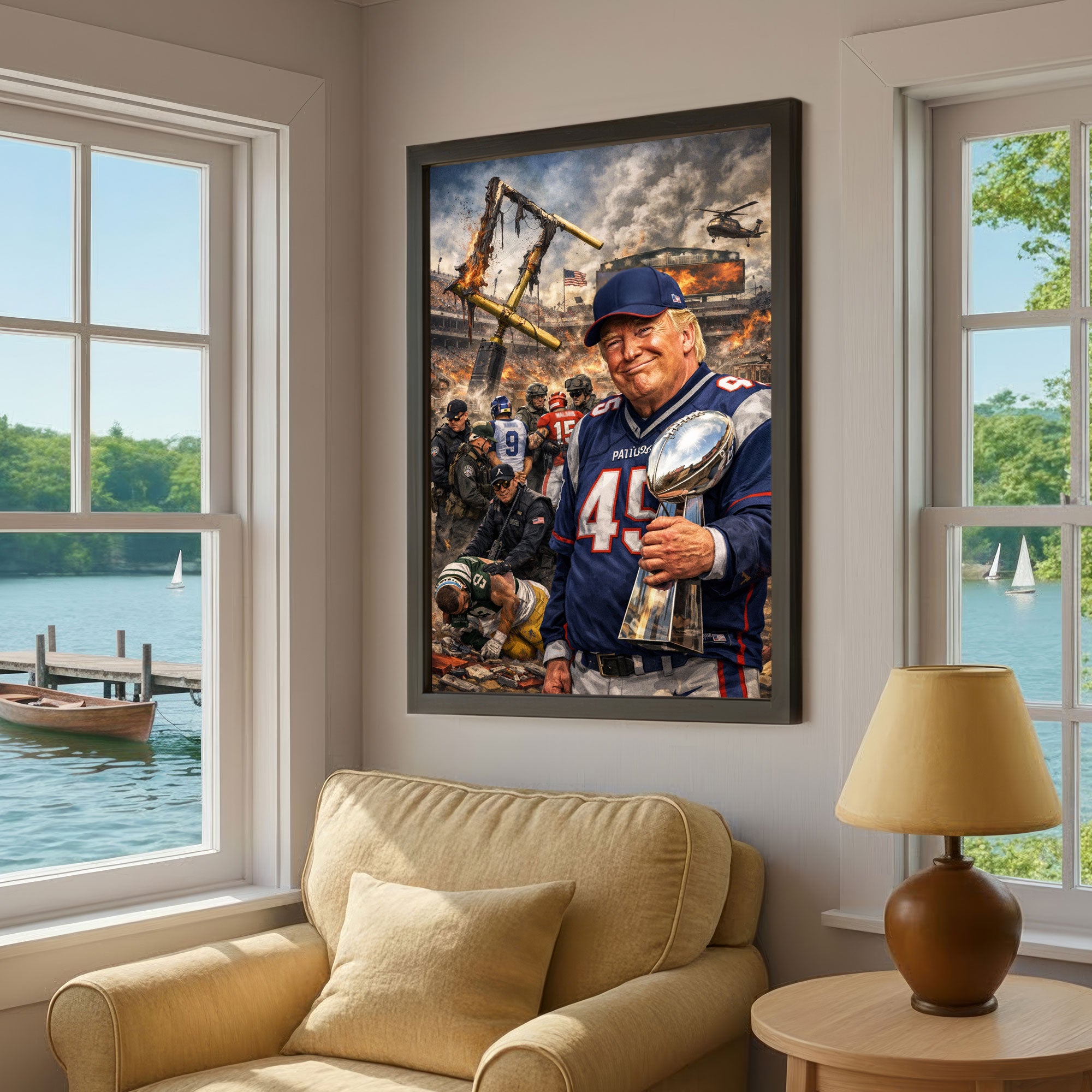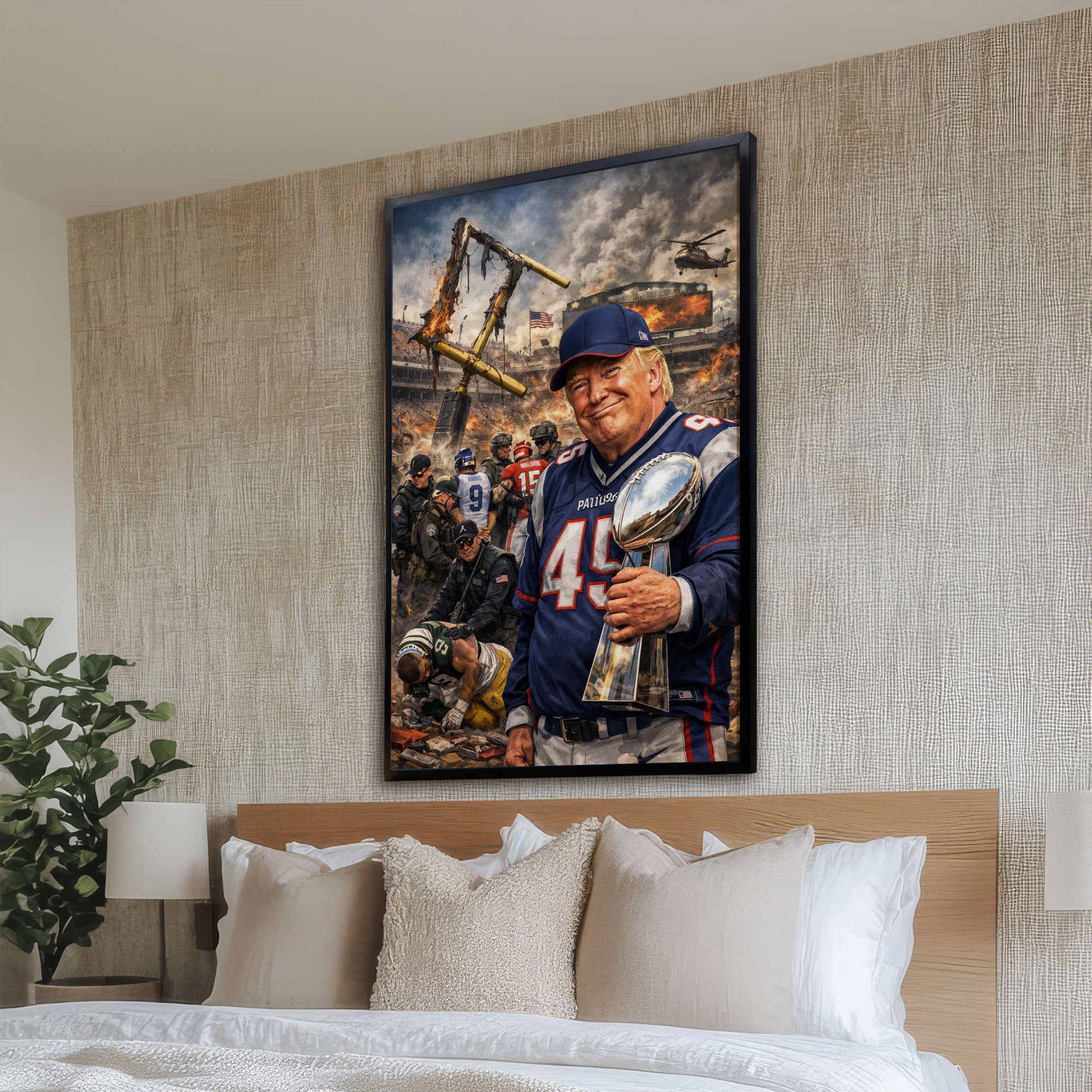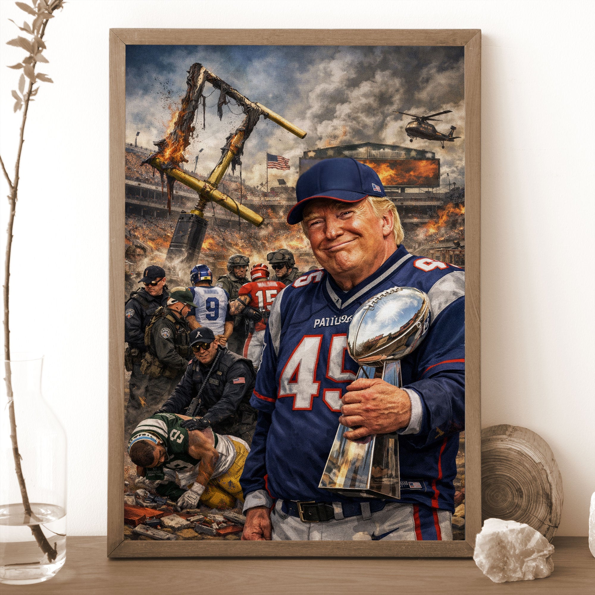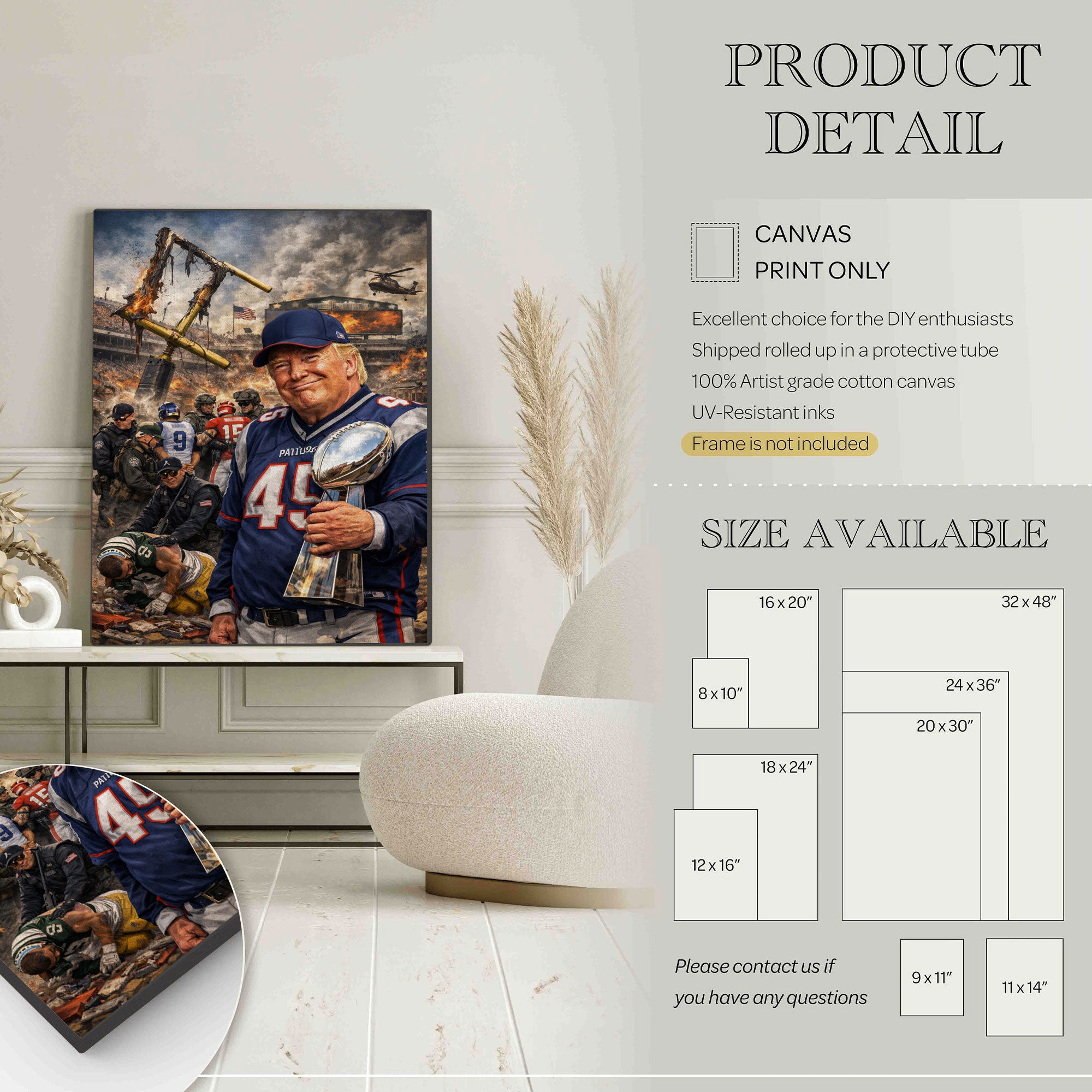 Funny Donald Trump Football Trophy Canvas Wall Art, American Football League Gift Ideas For Football Fans