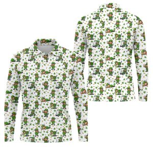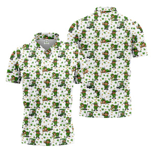 Funny Gnome Golf And Beer Green Shamrocks Mardi Gras Golf Shirt, Golf Tops For Men, Polo For Men