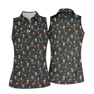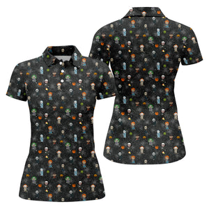 Funny Horror Character Black Golf Polo Shirt, Horror Movie Shirt, Halloween Golf Shirt, Womens Golf Polo