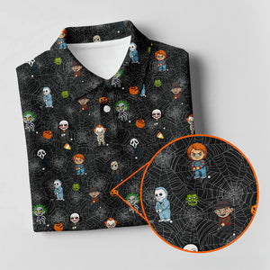 Meet the Funny Horror Character Black Golf Polo Shirt, Horror Movie Shirt, Halloween Golf Shirt, Womens Golf Polo – a shirt so bold it makes argyle cry in the corner. Designed for golfers who'd rather make a fashion statement than follow dress codes, this polo is your ticket to turning heads, raising eyebrows, and maybe distracting your buddies just enough to win a few holes. (We’re not saying it’s cheating... we’re saying it’s strategy.)