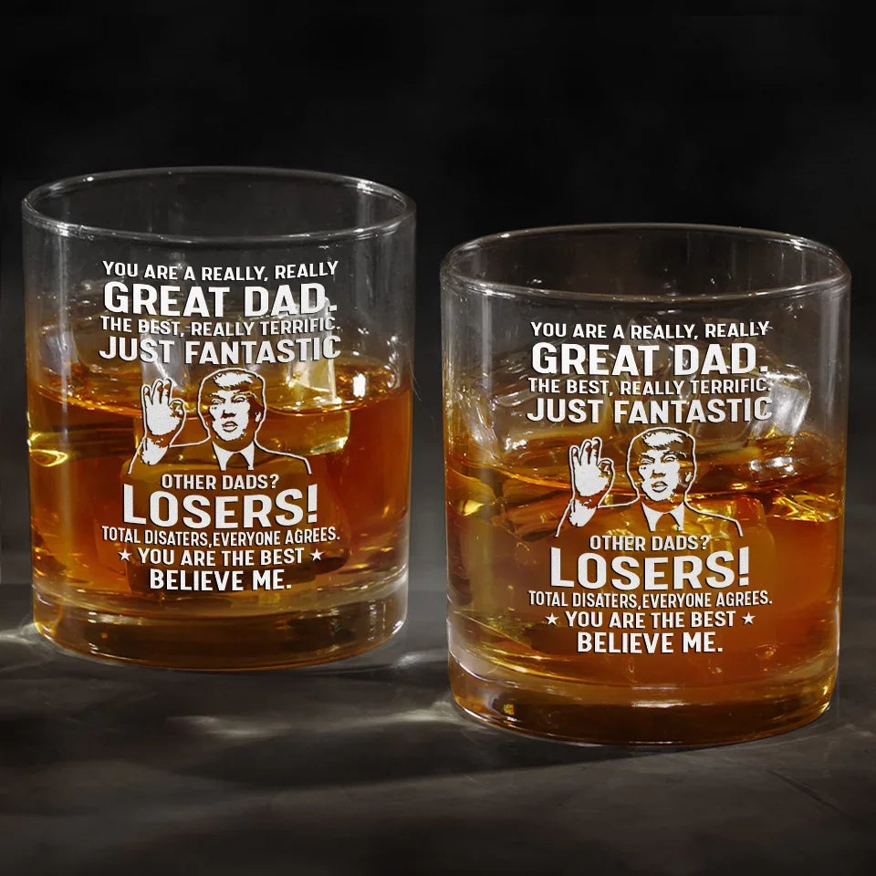 Funny Humorous Great Dad Whiskey Glass, Trump2024 Old Fashioned Glass, Cool Gifts For Dad