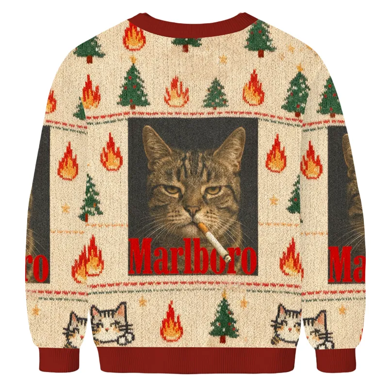 Funny Smoking Cat Ugly Sweater, Gift Ideas For Cat Lovers, Christmas Ugly Sweatshirt, Xmas Ugly Sweater
