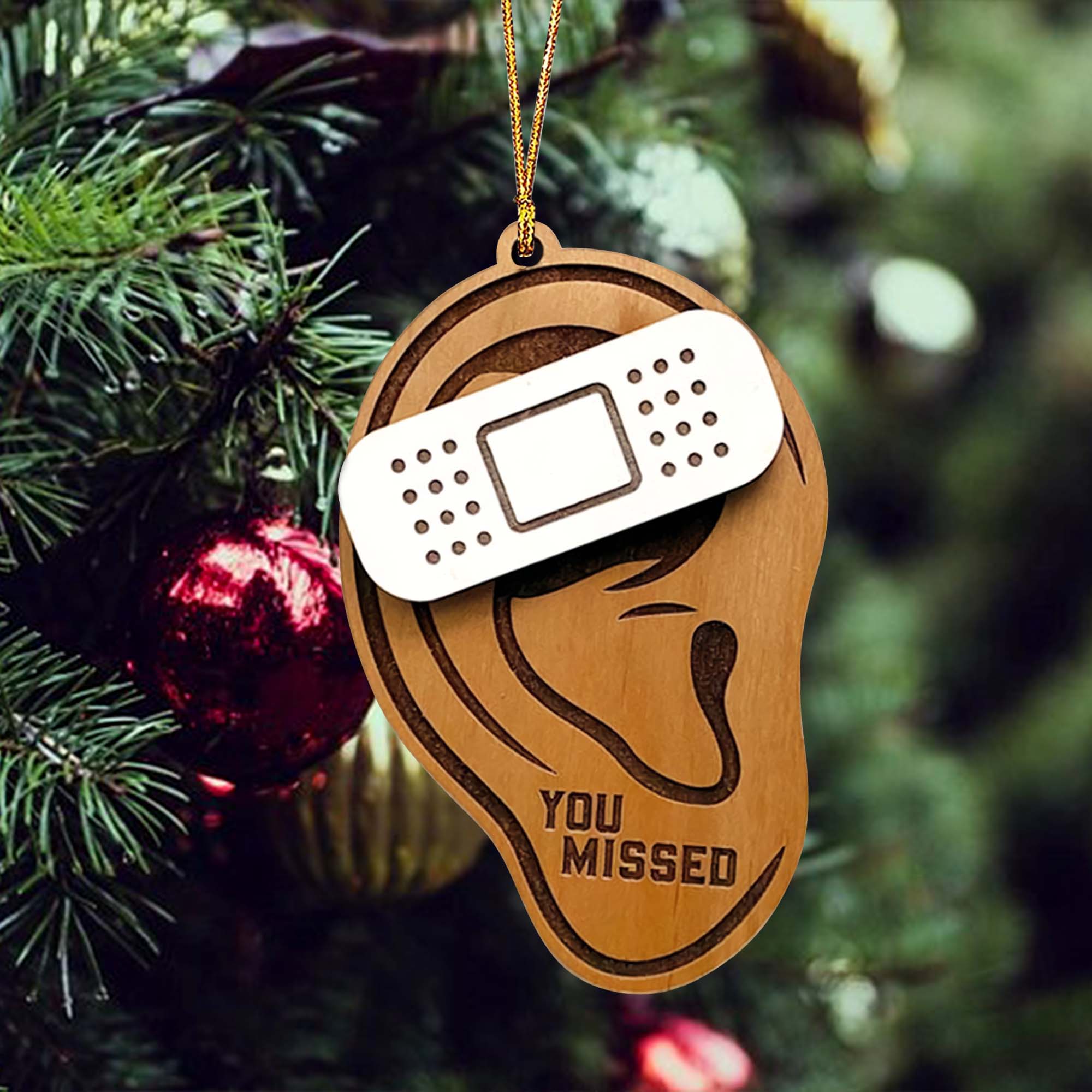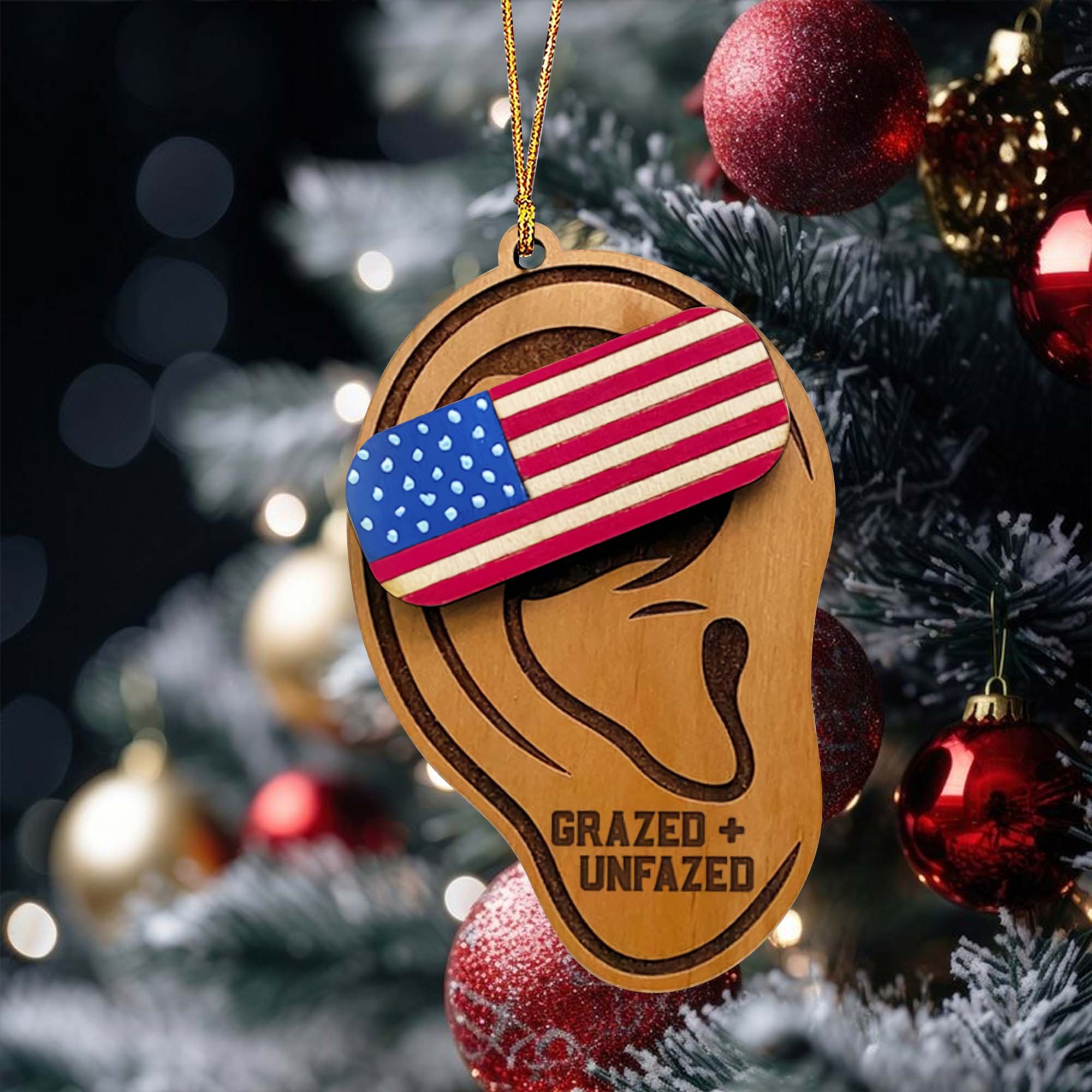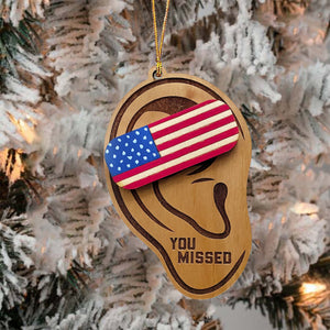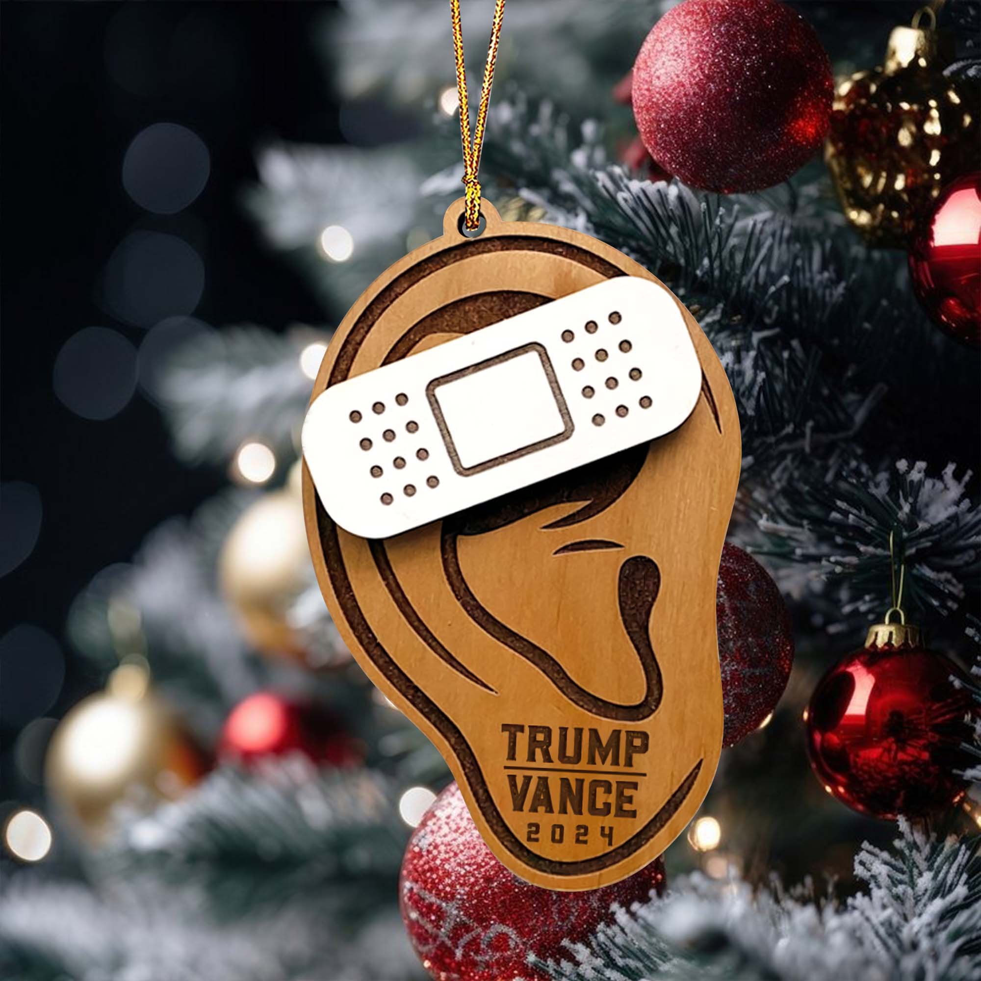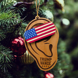 Trump Ear Wood Ornament, Trump2024 Funny Political Wood Ornament, Christmas Decor