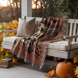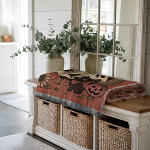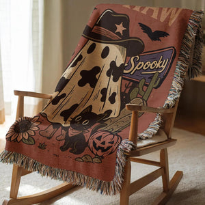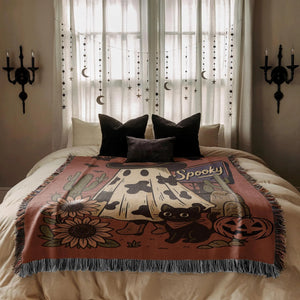 Ghost Cat Western Blanket, Ghost Pumpkin Throw Blanket, Spooky Season Decor