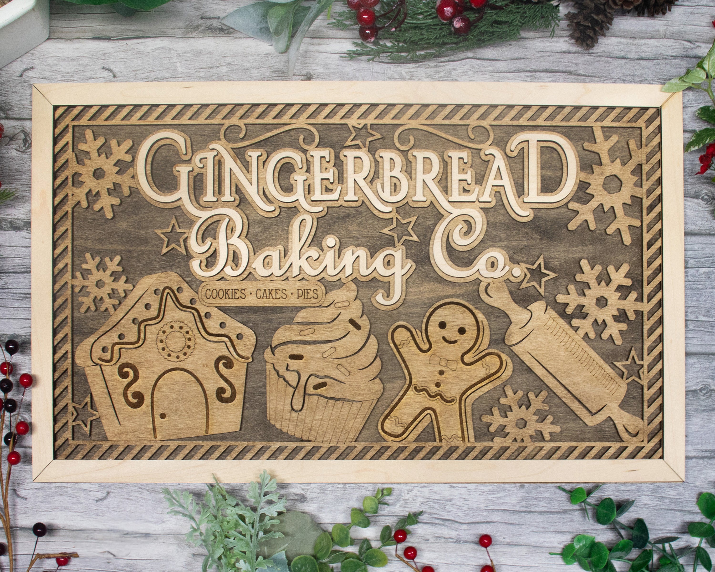 Gingerbread Baking Co Personalized Christmas Wood Sign, Holiday Decor, Christmas Gifts