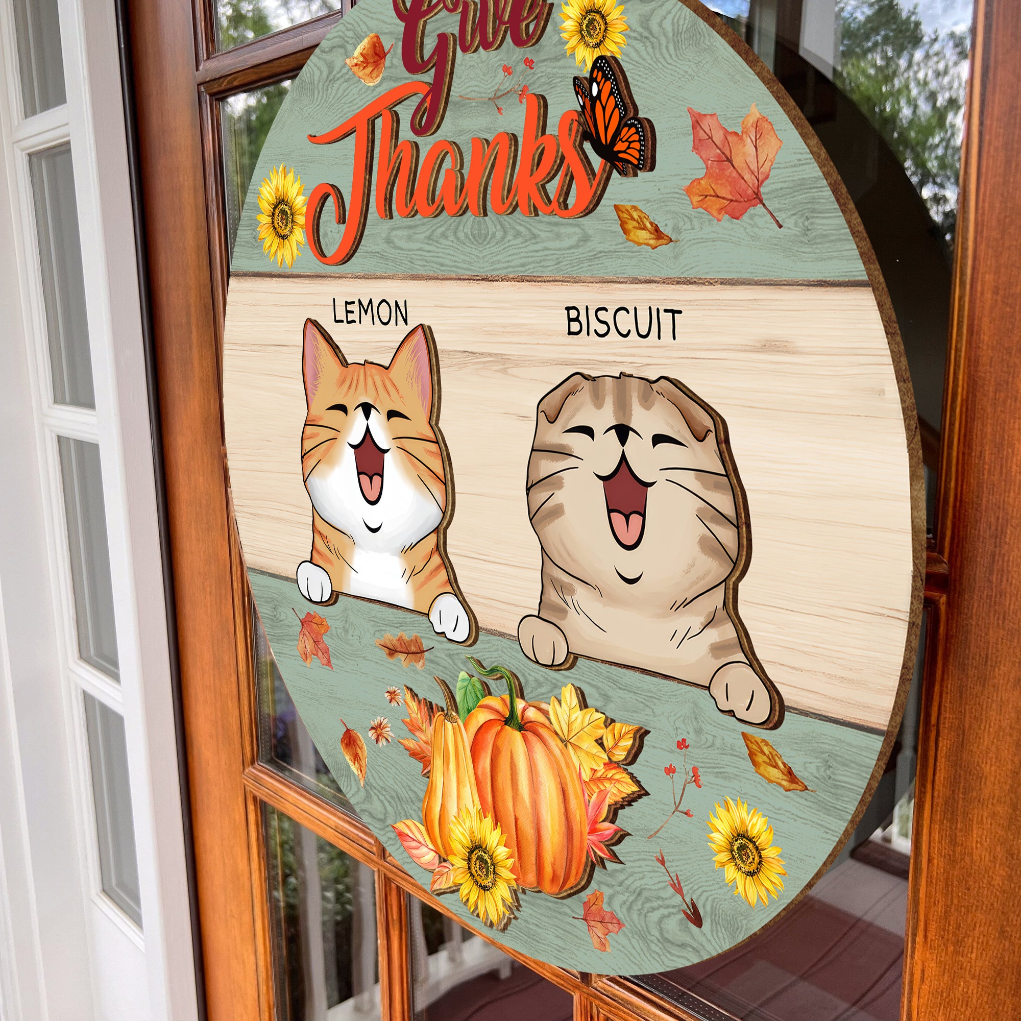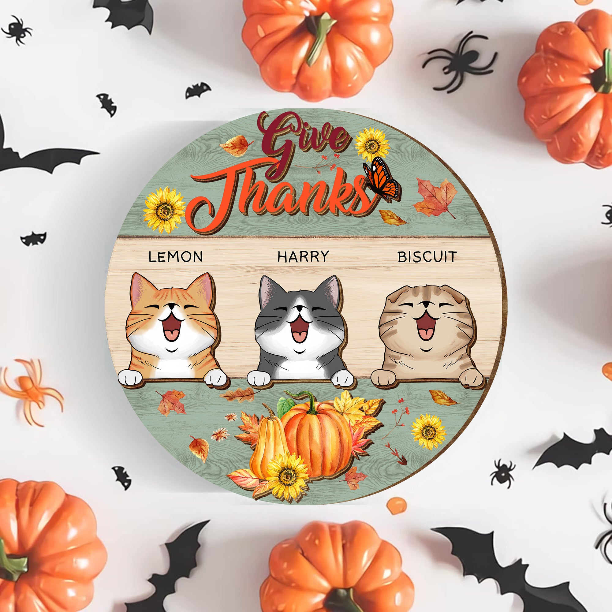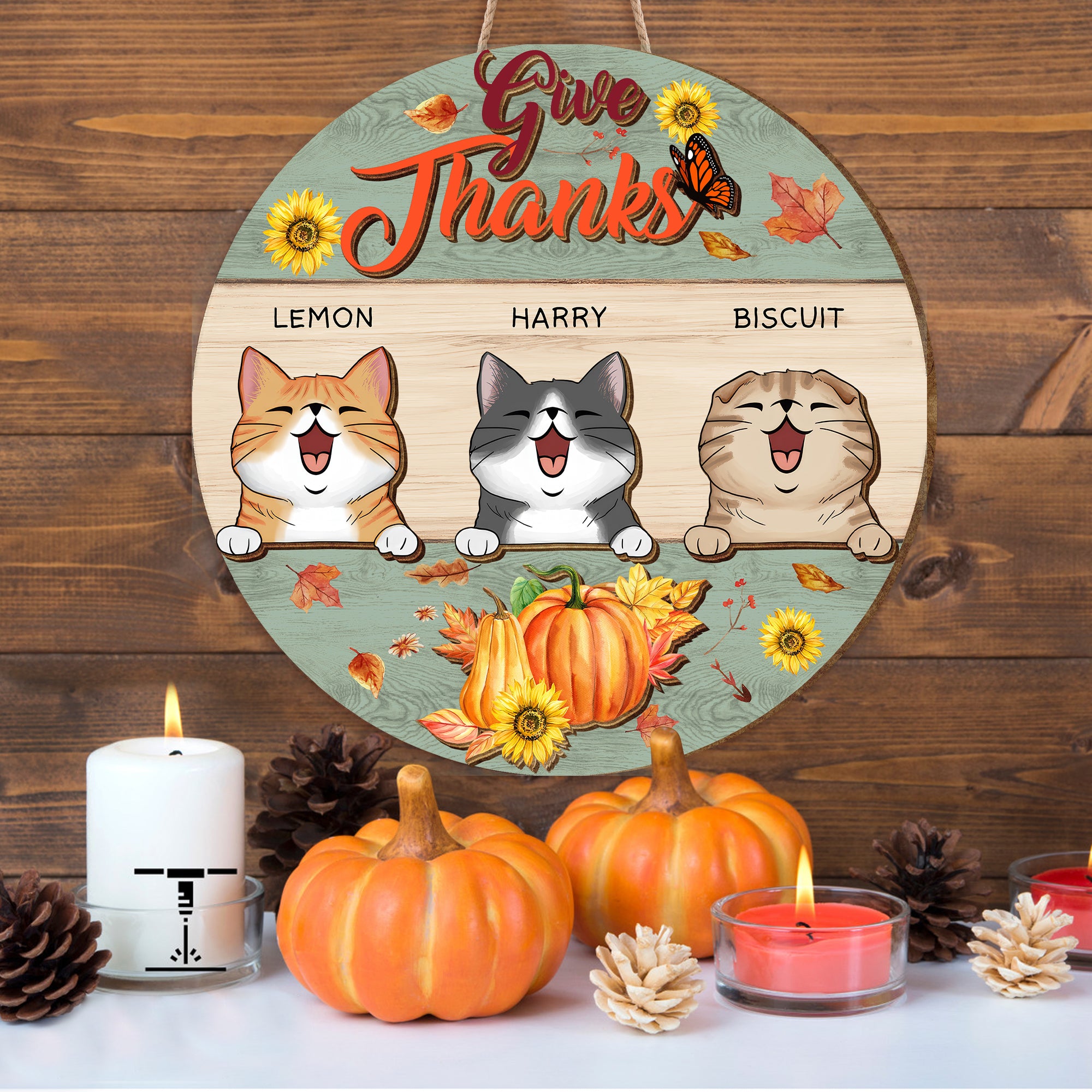 Give Thanks Personalized 2 Layered Christmas Wood Sign, Gifts For Cat Lovers