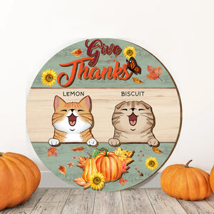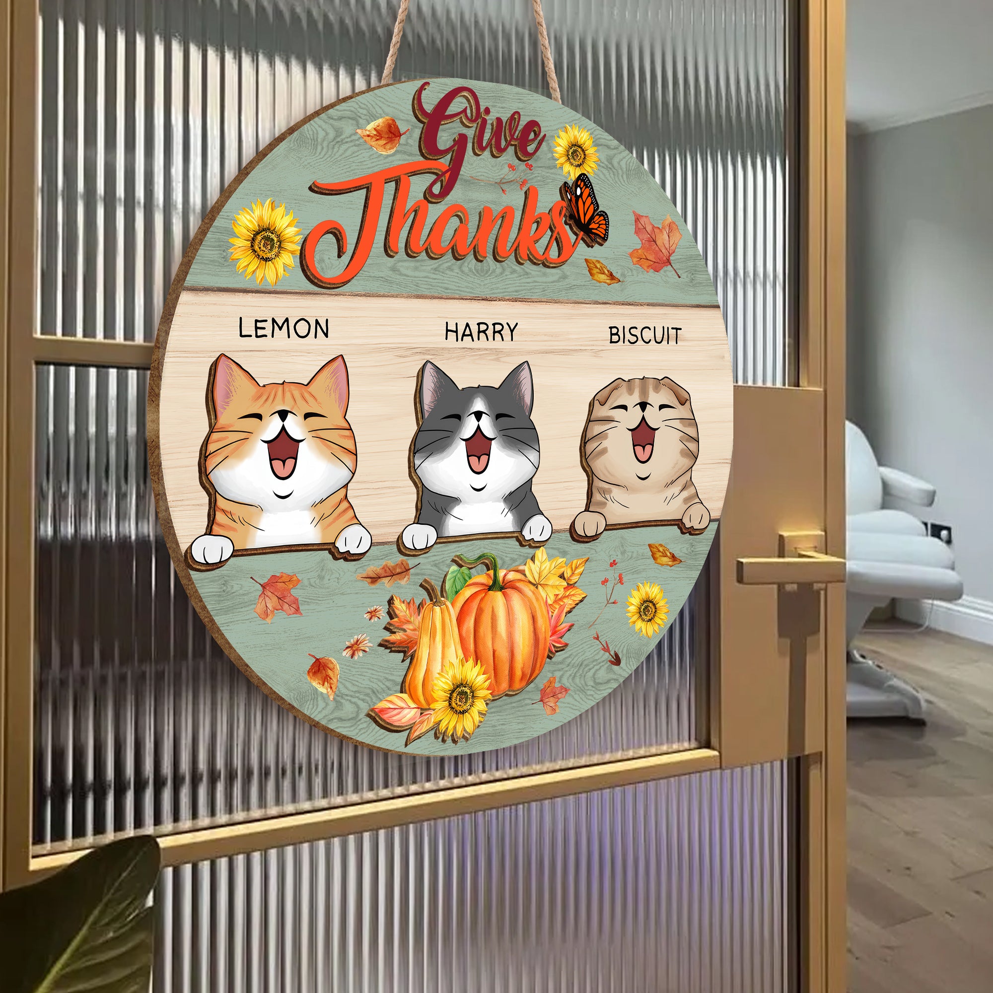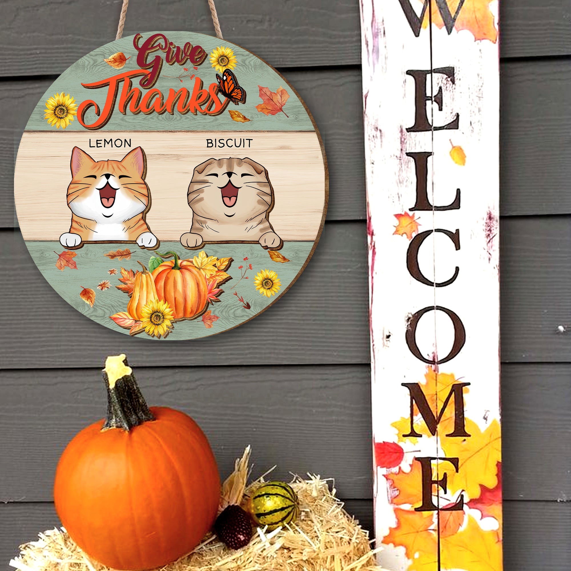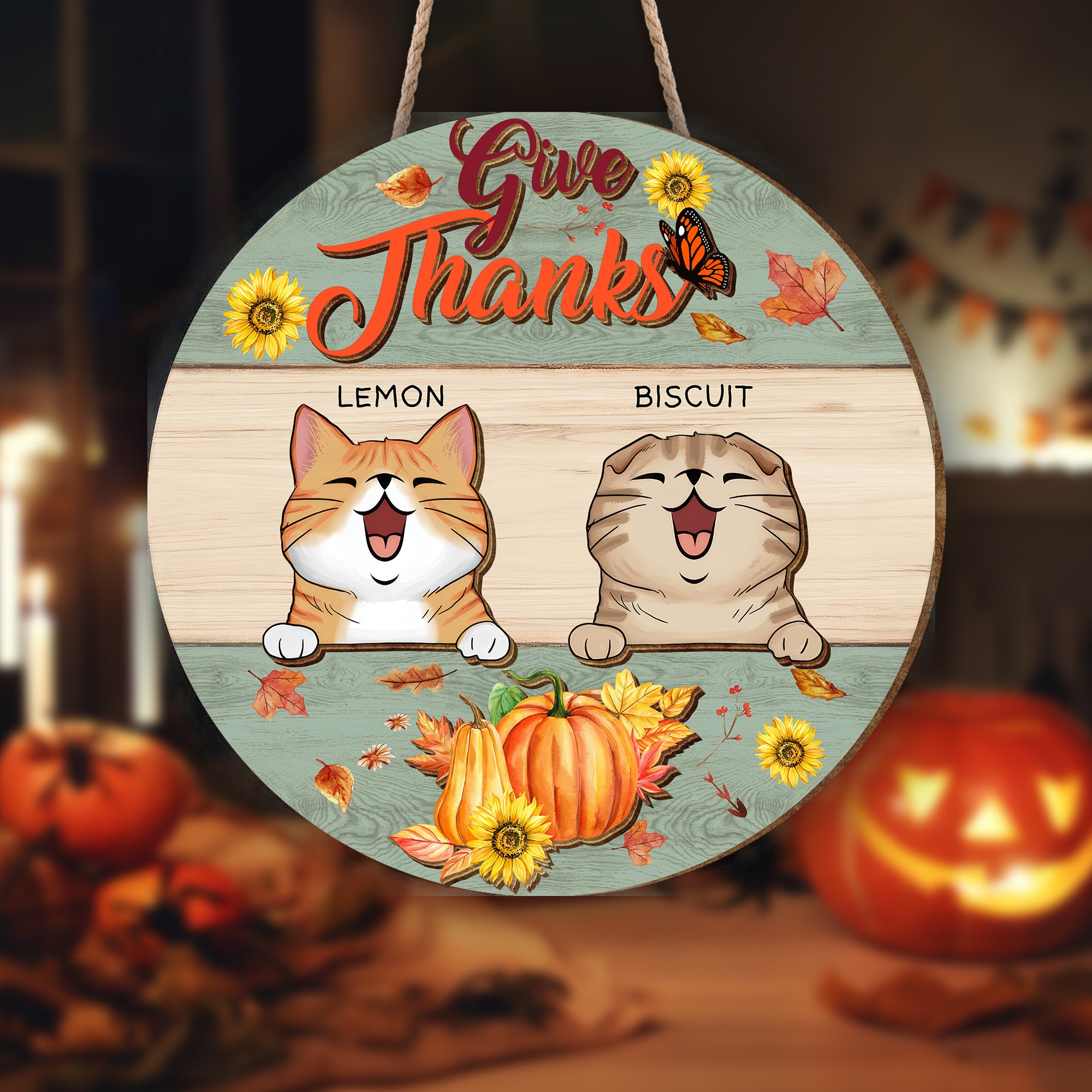 Give Thanks Personalized 2 Layered Christmas Wood Sign, Gifts For Cat Lovers