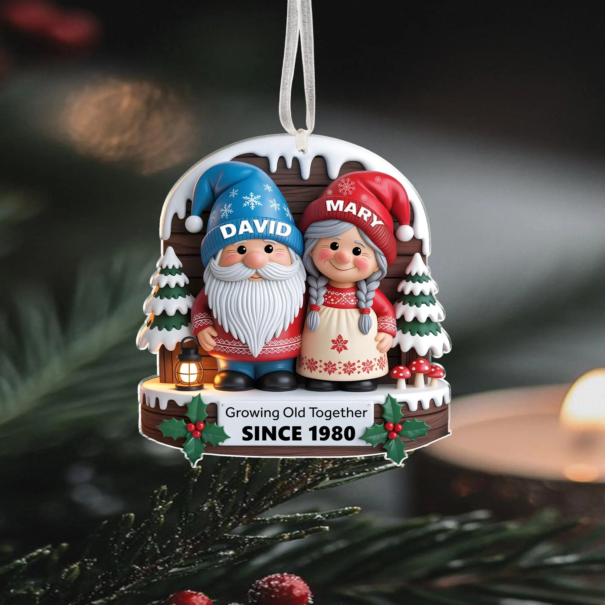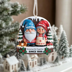 Gnome Couple Growing Old Together Acrylic Christmas Ornament, Couple Ornaments, Anniversary Gift For Husband Wife