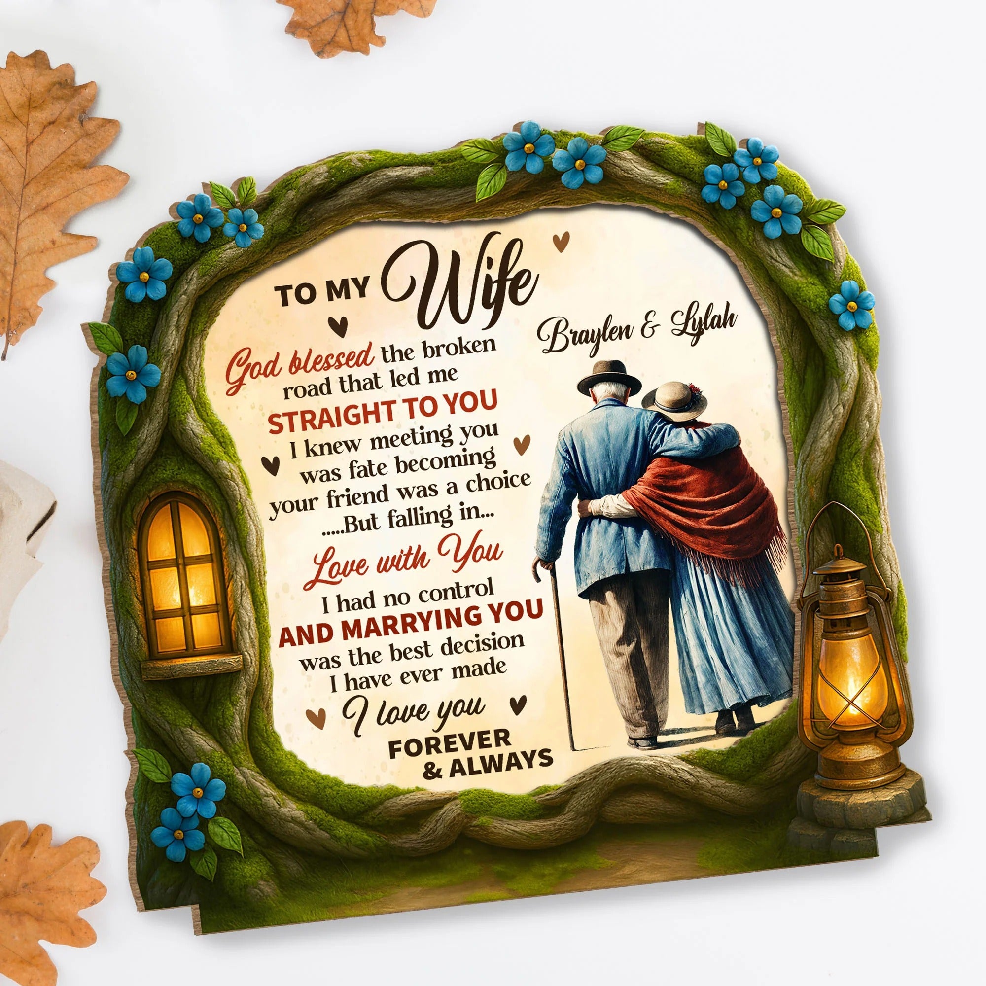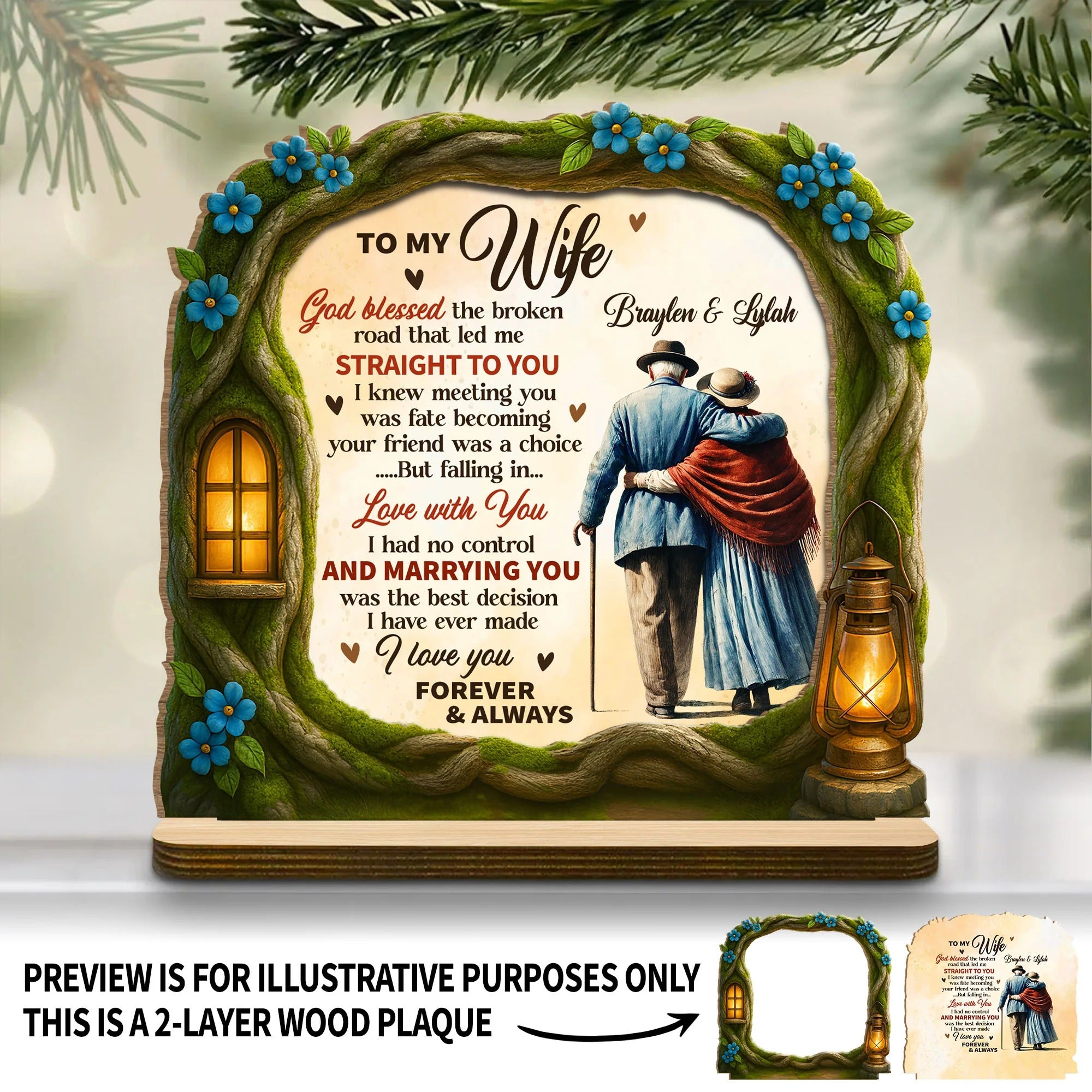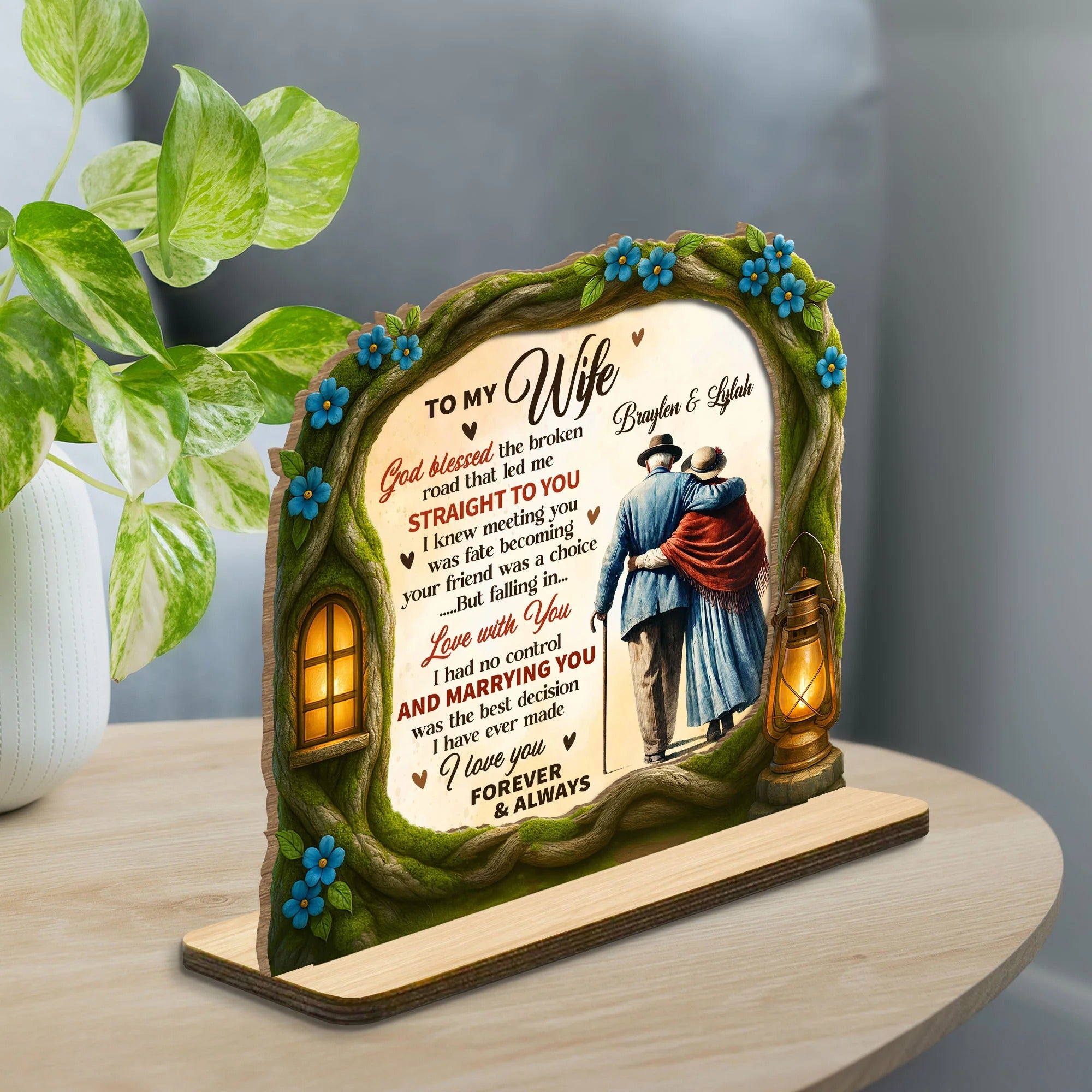 God Blessed The Broken Road That Led Me Straight To You 2-Layer Wooden Plaque, Personalized Valentines Gift