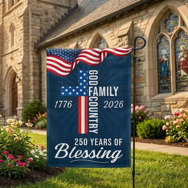 God Family Country 250 Years of Blessing God 1776-2026 Patriot Garden Flag, 250th Anniversary House Flag