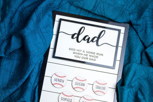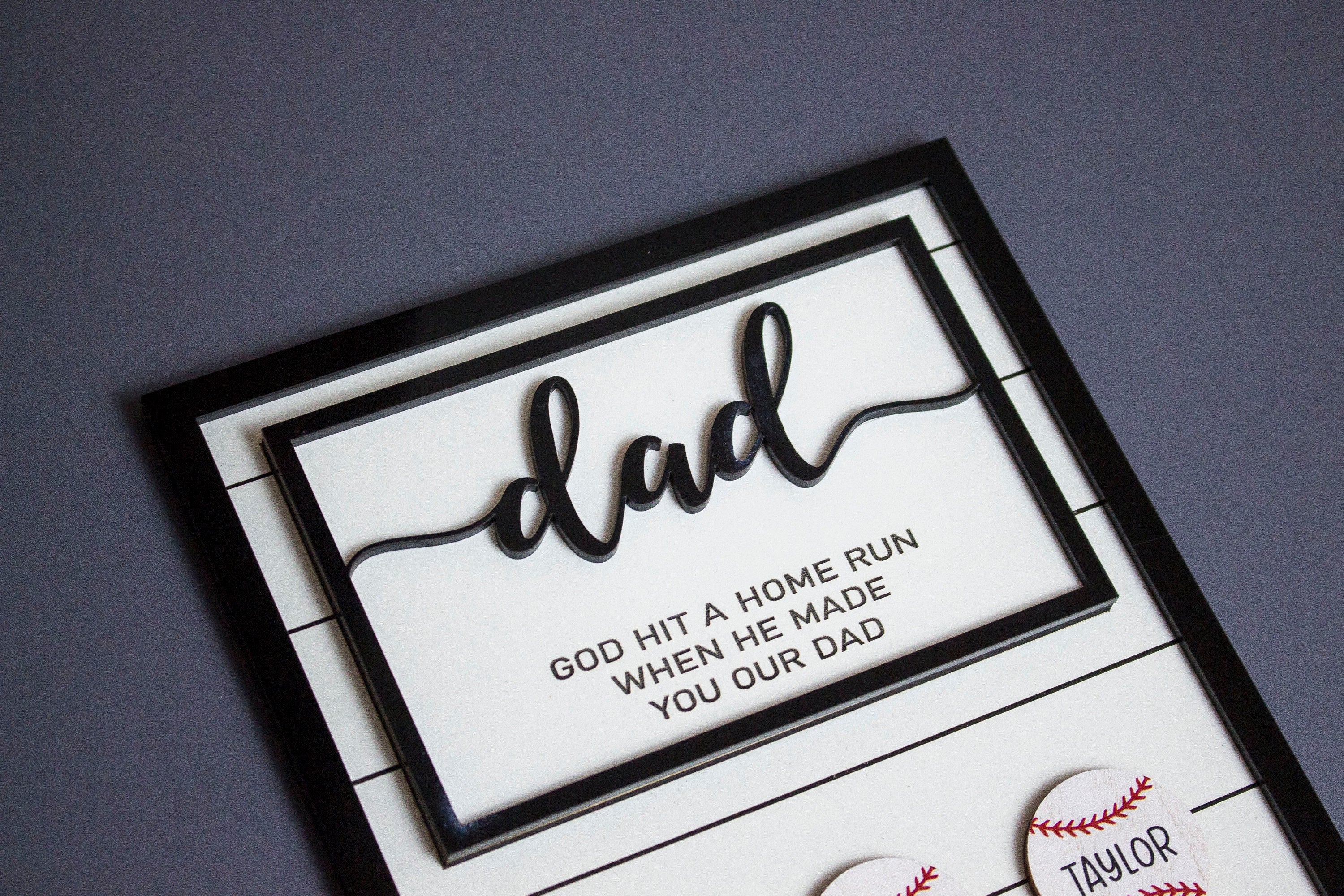 Crafted with precision and care, this wooden sign features the endearing message "God Hit A Home Run When He Made You Our Dad." It's a powerful reminder of the impact Dad has had on your family and the love and admiration you hold for him.