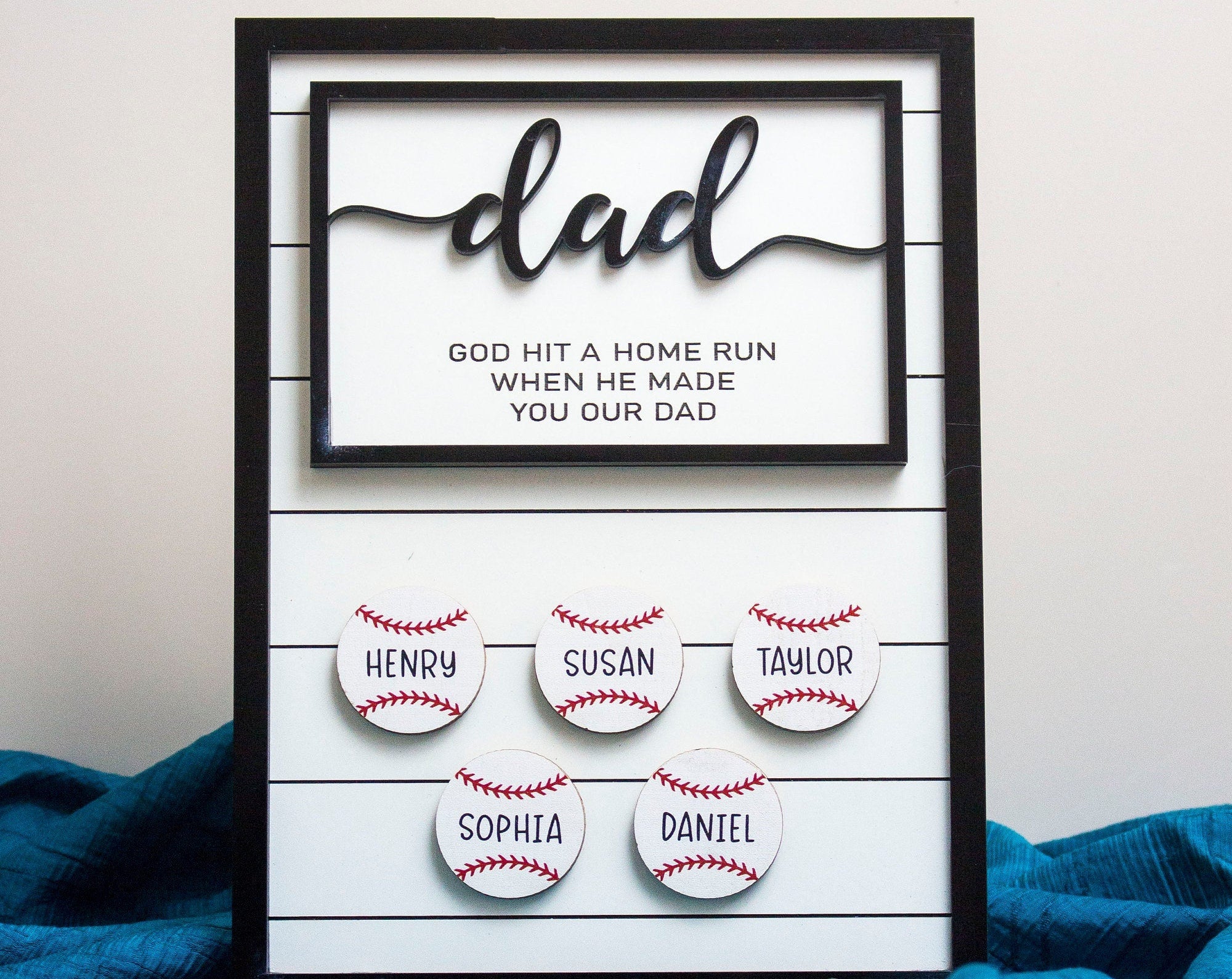 Personalize the sign further by adding Dad's name or a special message, creating a one-of-a-kind piece that he'll treasure forever. Whether he's a die-hard fan of a specific team or simply loves the game of baseball, this custom sign is sure to hit a home run with Dad.