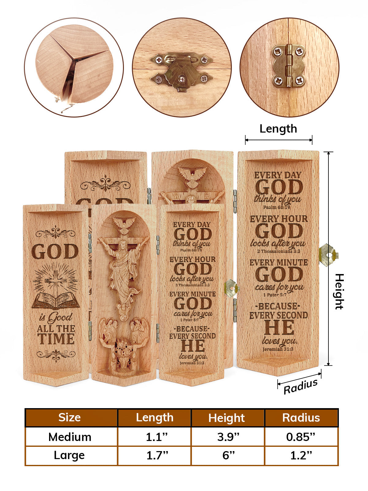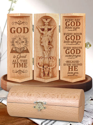 God Is Good All The Time Openable Wooden Cylinder Sculpture of Jesus Christ, Christ Decor