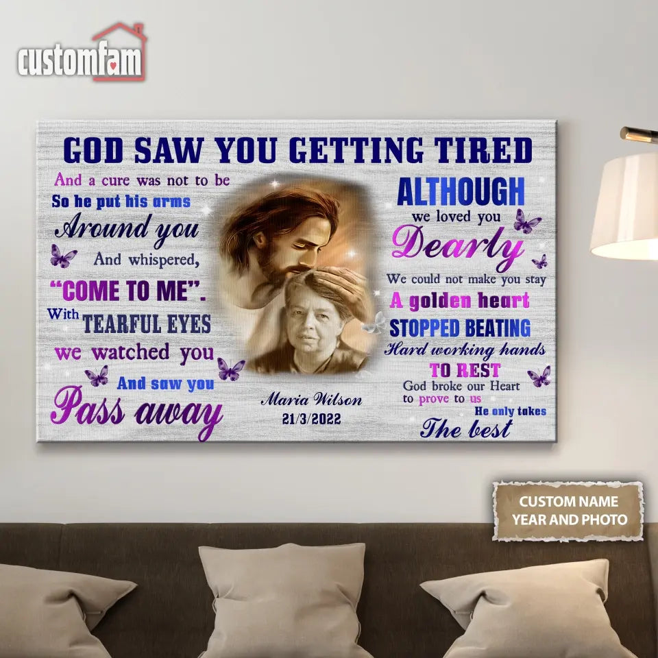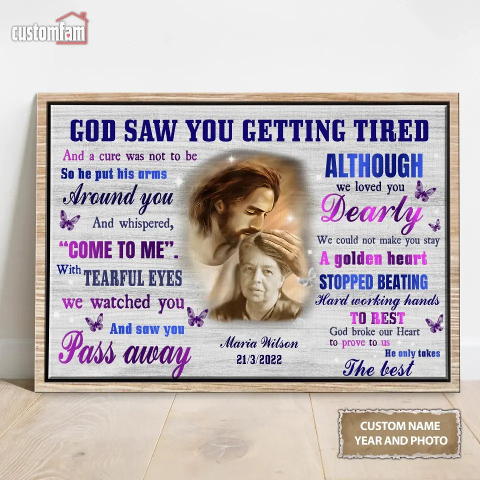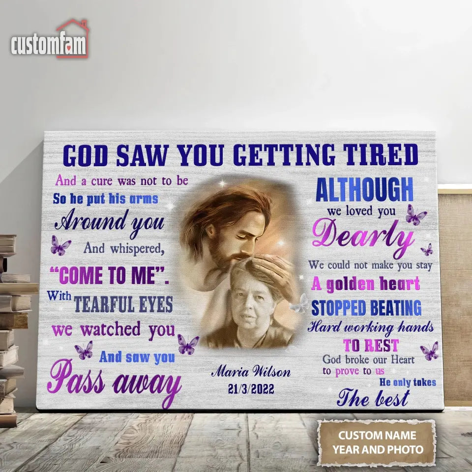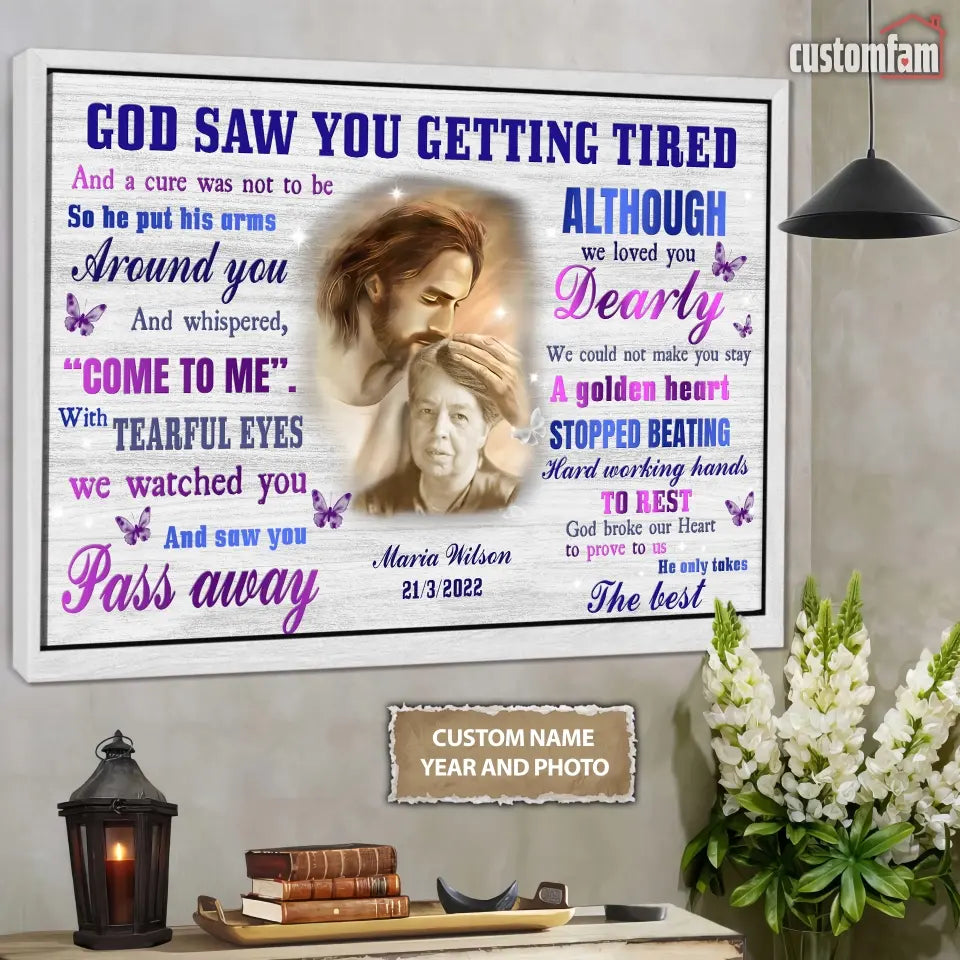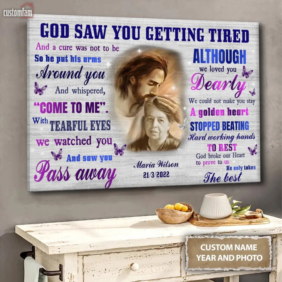 God Saw You Are Getting Tired Custom Photo Canvas Prints, Jesus Memorial Gift, Sympathy Gifts, Jesus Memorial Gift, Safe In God Hand, Remembrance Gifts