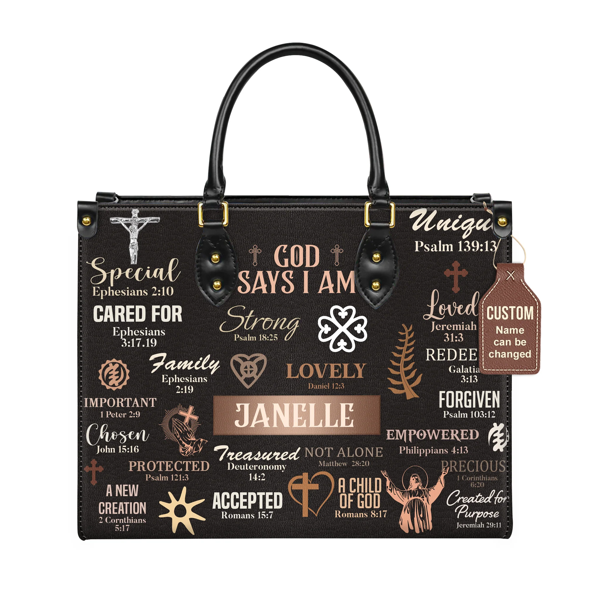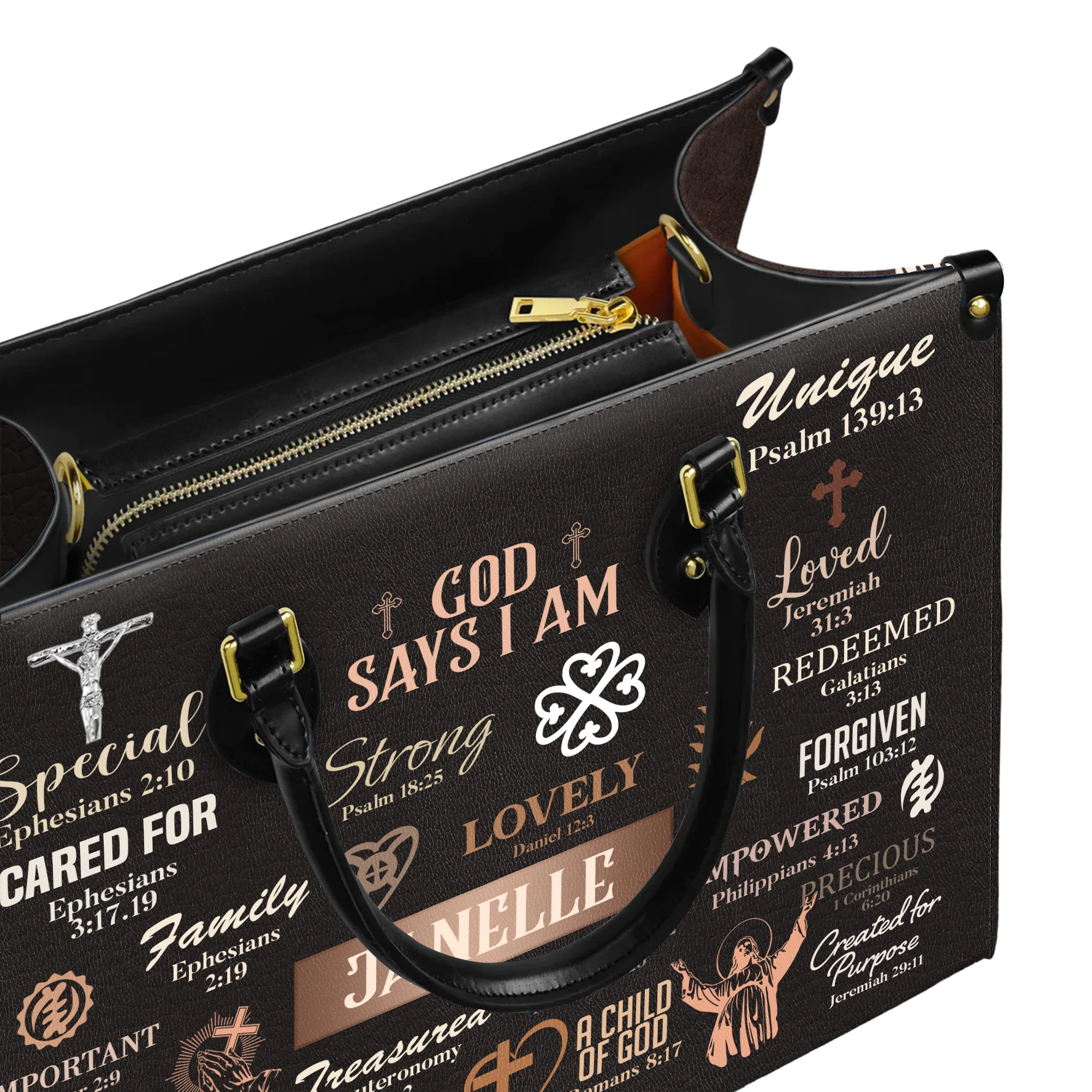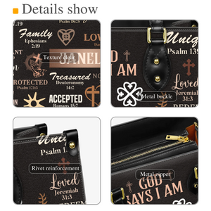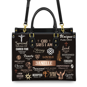 God Says I Am Special Loved Chosen Christian Identity Affirmation Personalized Leather Handbag