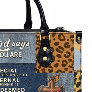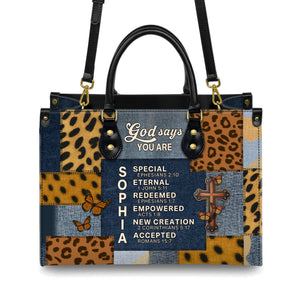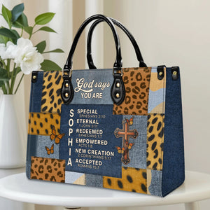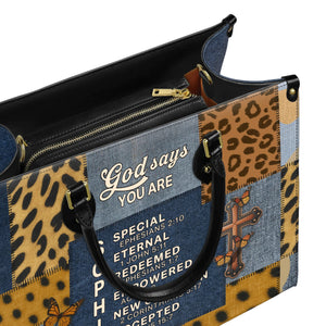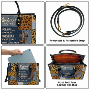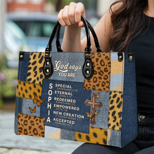 God Says You Are Special Eternal Redeemed Empowered New Creation Accepted Personalized Leather Handbag