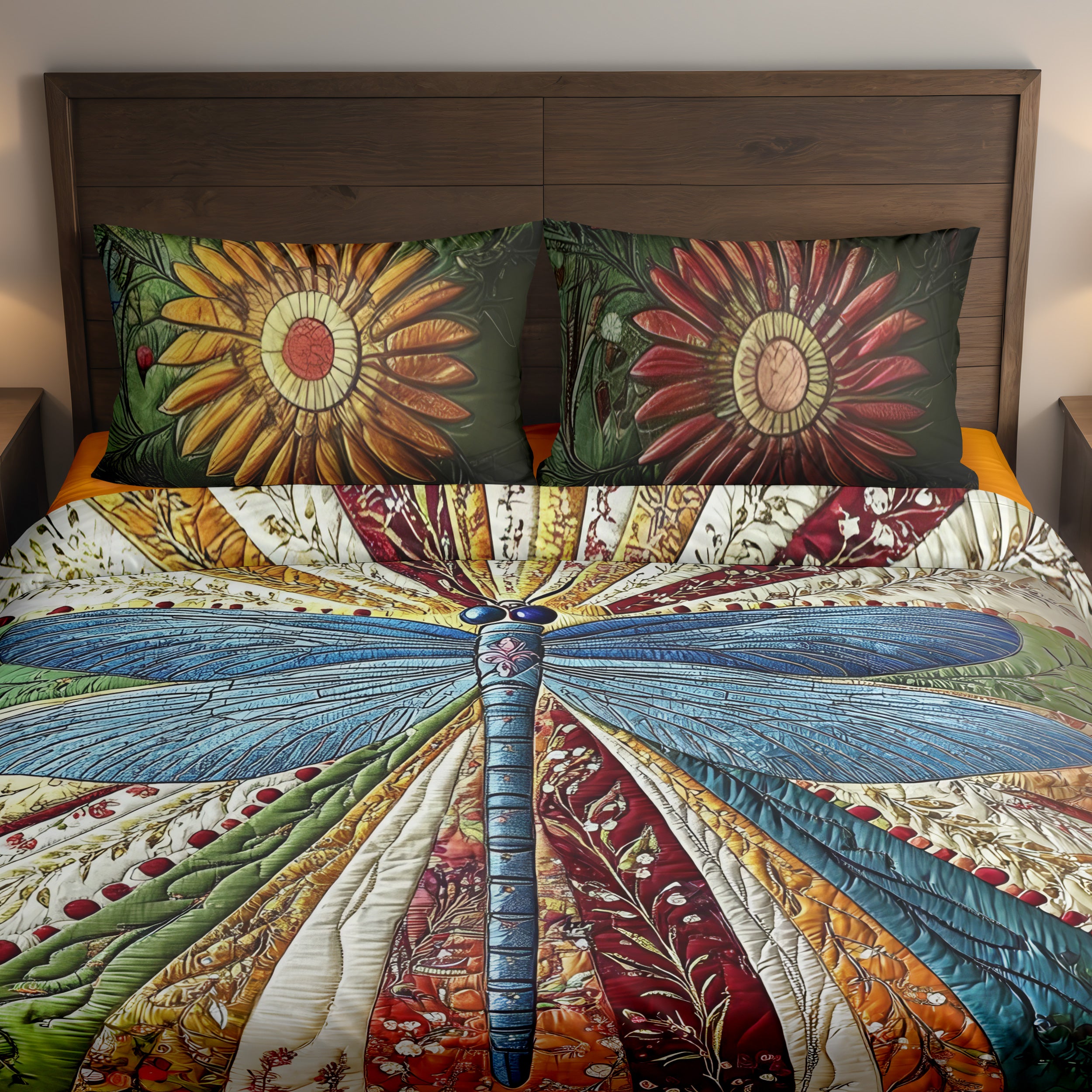 Golden Dragonfly Quilt Bed Sets, Bedding Set, Bedroom Decor