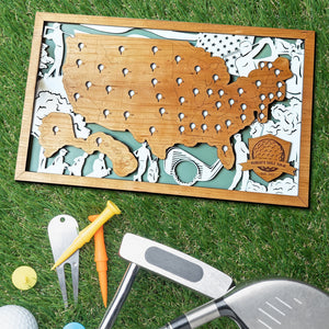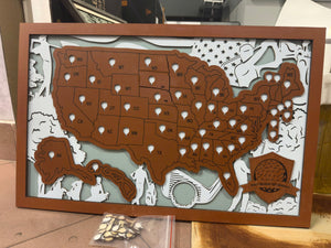 Golf Course Travel Maps, Golf Map USA With Pin, Golf Wooden Travel Map, Gift For Golfer
