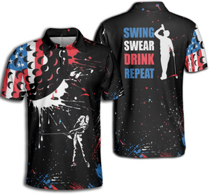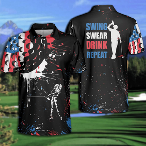 Golf Man Swing Swear Drink Repeat Golf Polo Shirts, Golf Gift For Men, Golf Shirts For Men