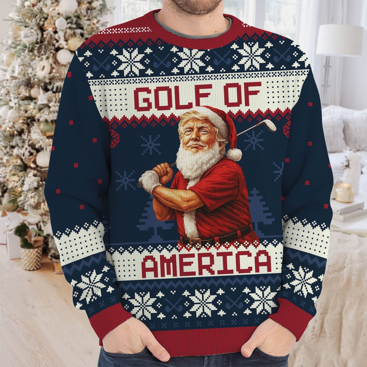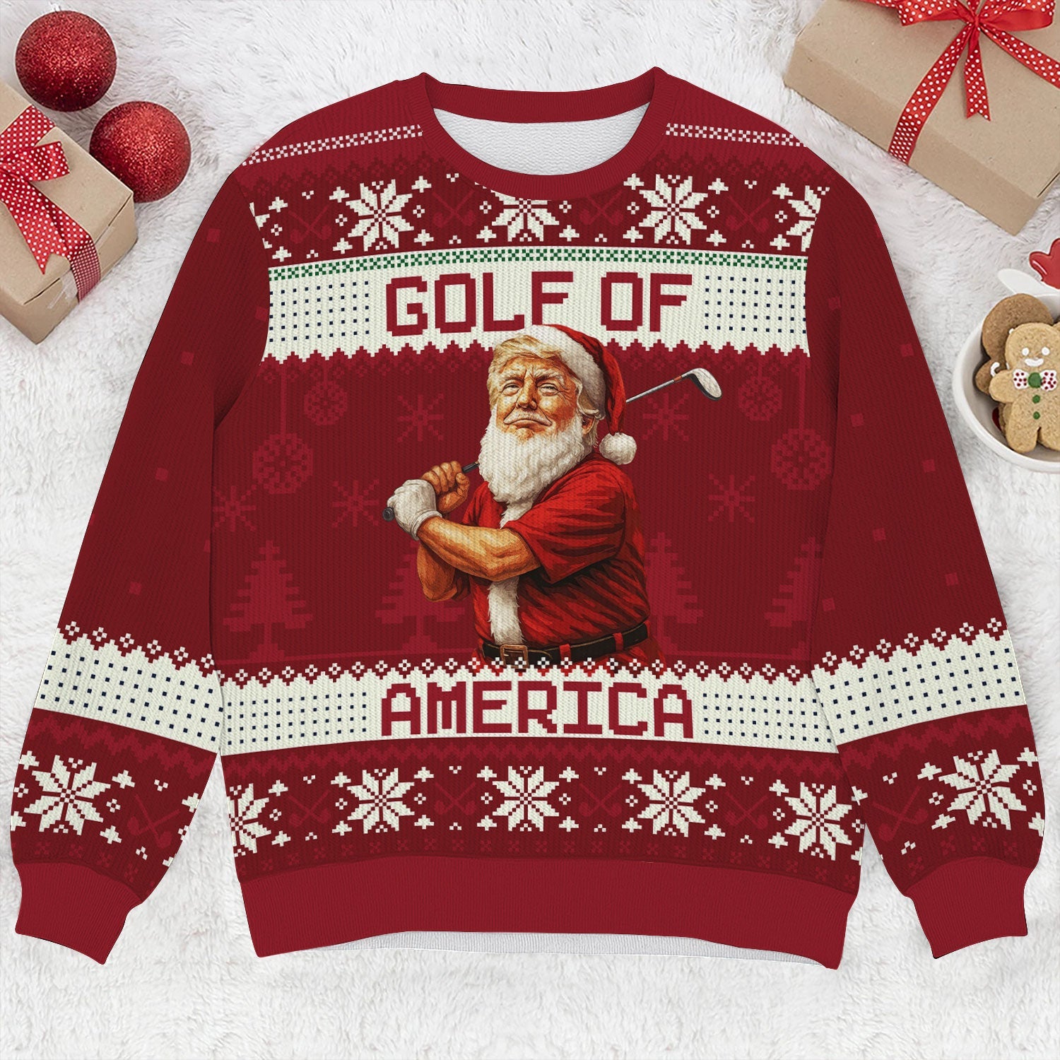 Introducing the Golf Of America Funny Santa Claus Christmas Ugly Sweater, Golf Ugly Christmas Sweater, Christmas Golf Shirt, where bad shots meet good vibes and Christmas spirit takes a full swing.