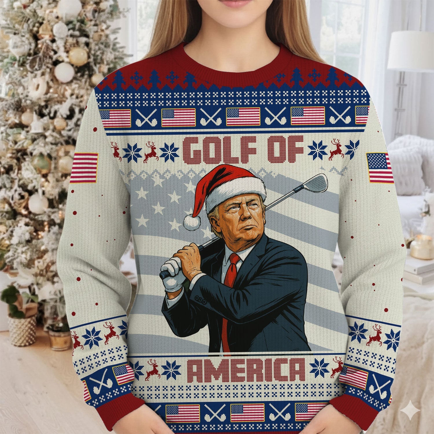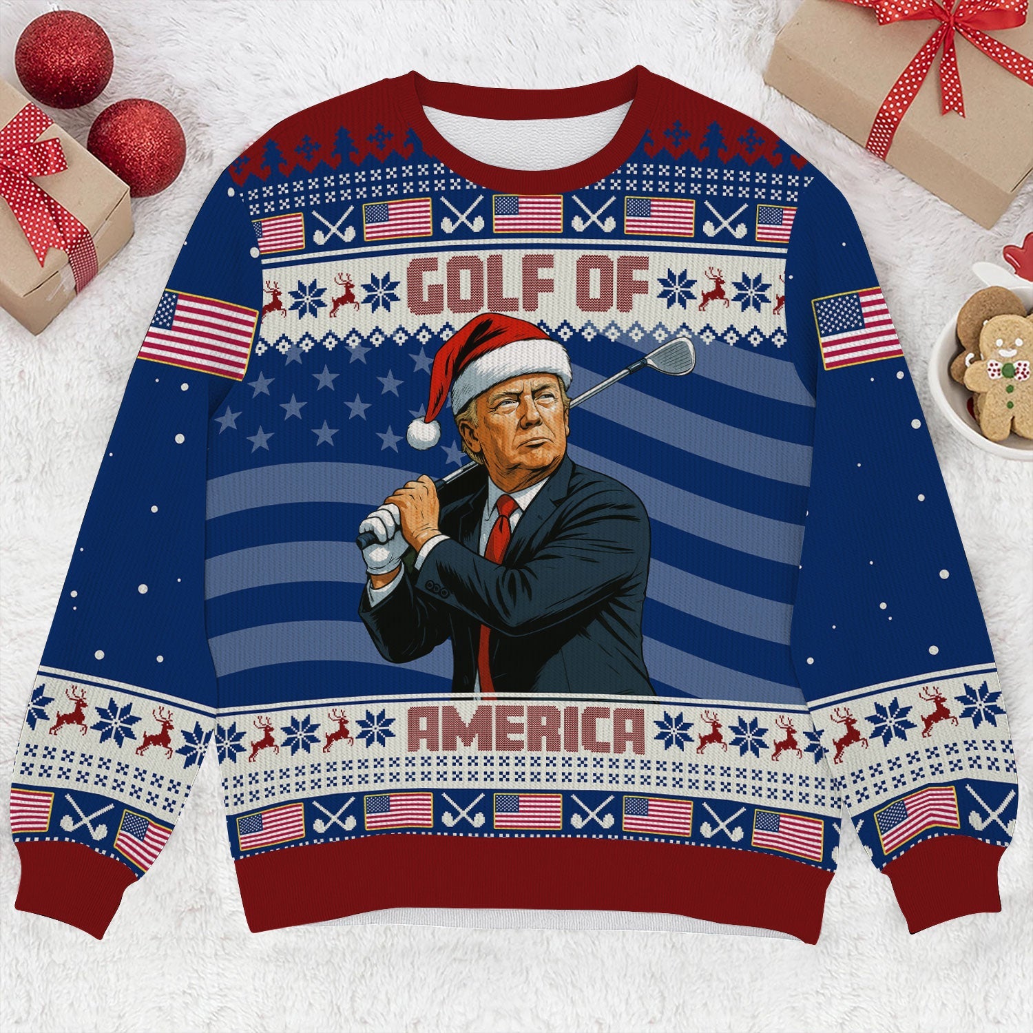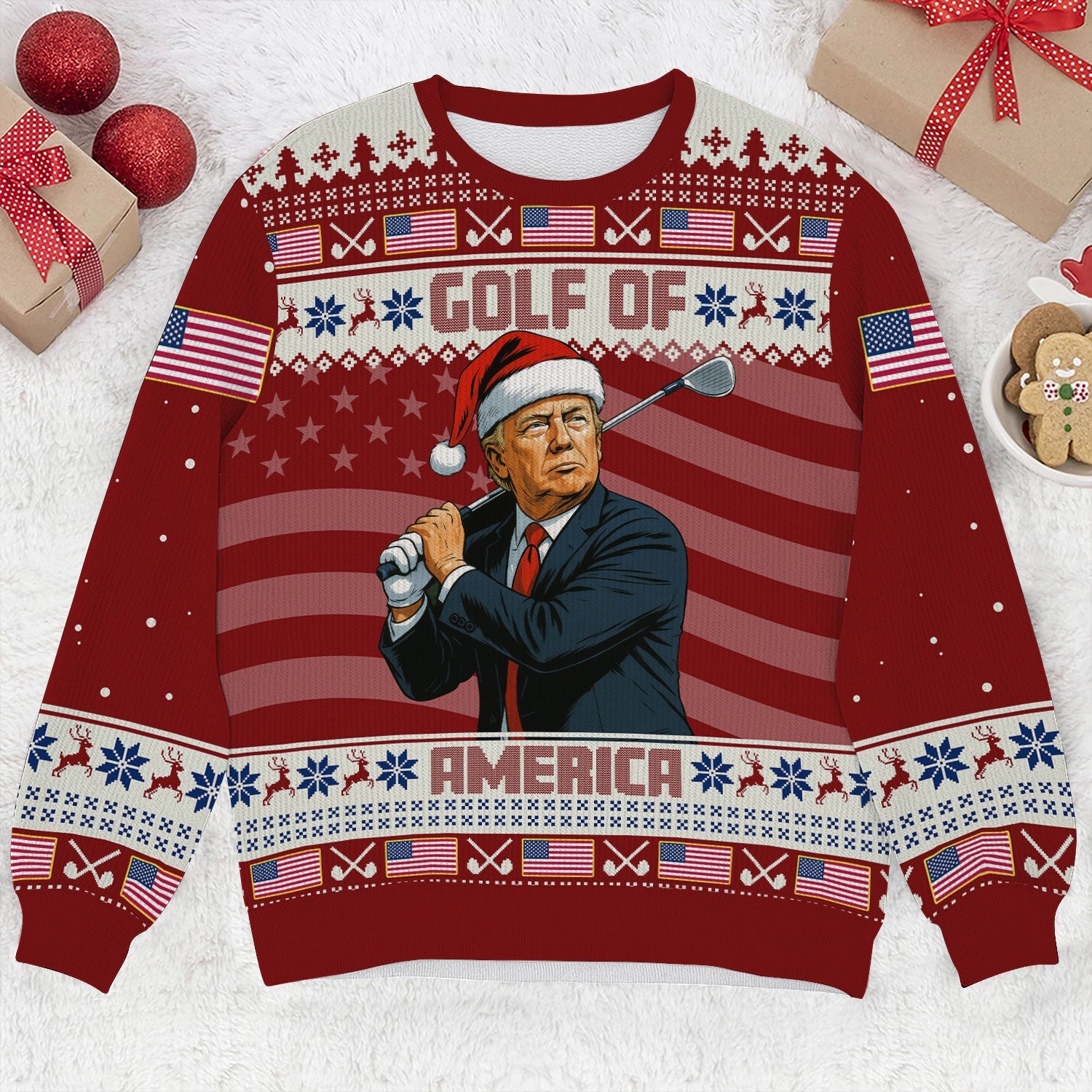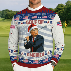 Golf Of America Trump President Santa Christmas Ugly Sweater, Golf Ugly Christmas Sweater, Christmas Golf Shirt