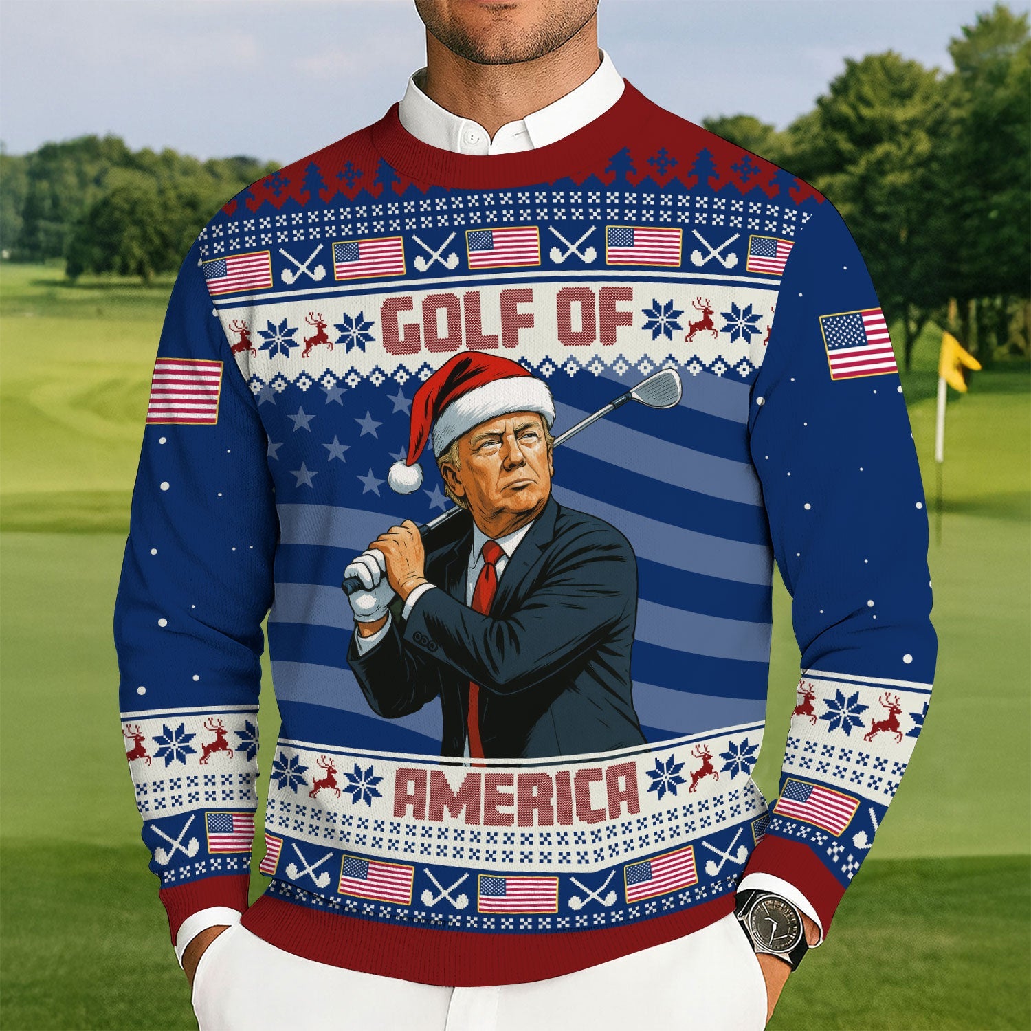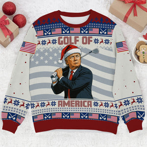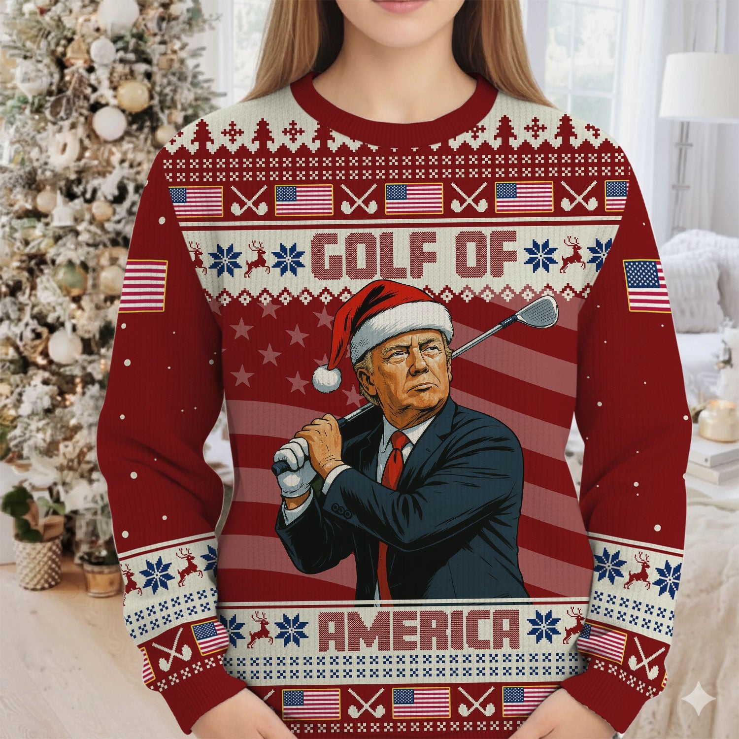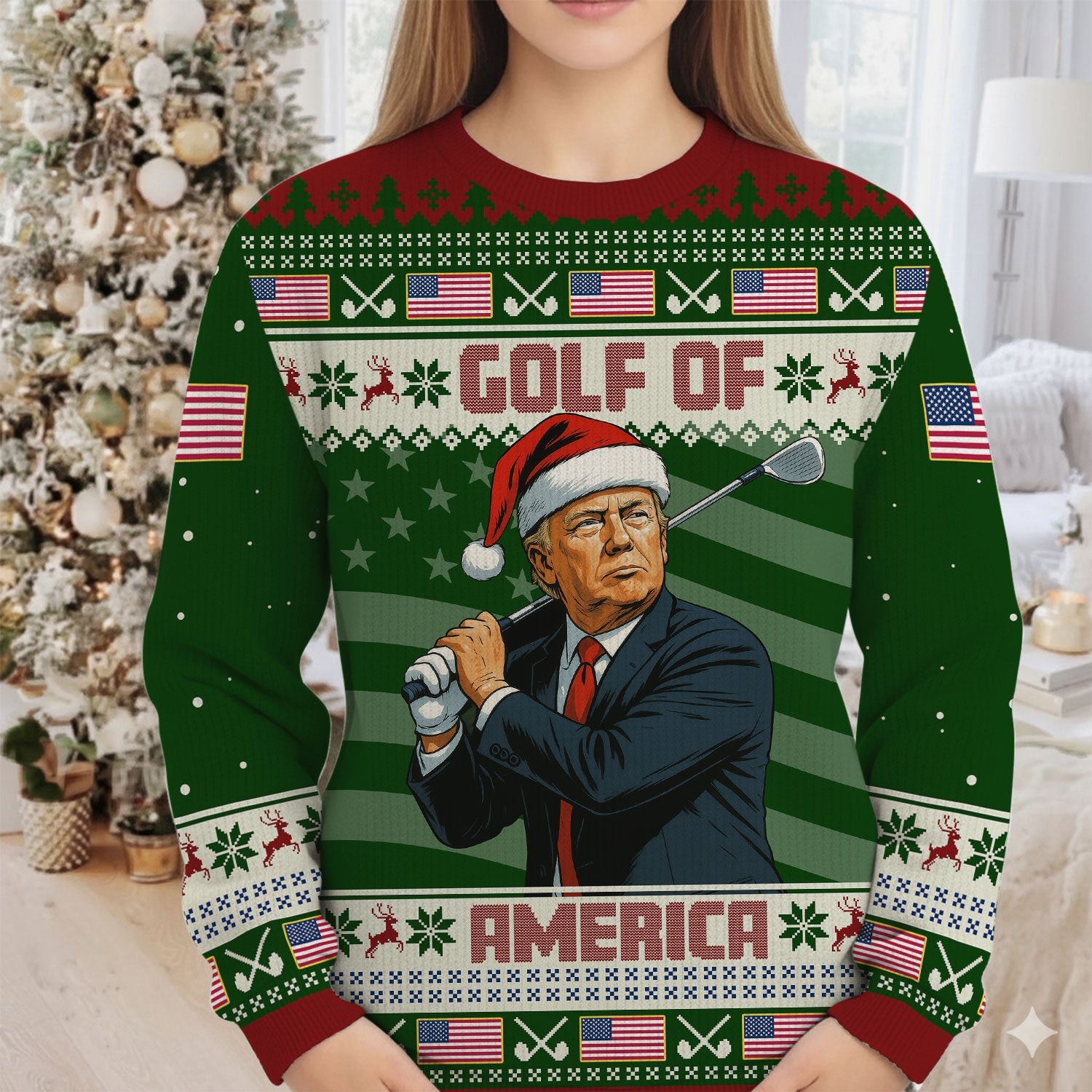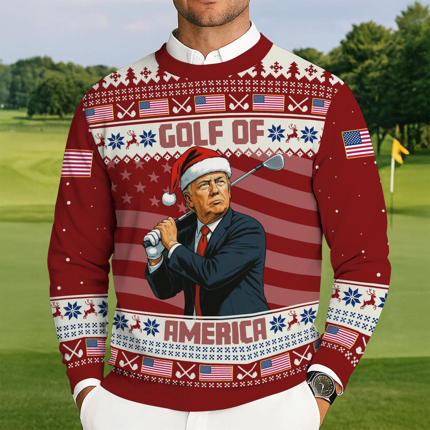 Golf Of America Trump President Santa Christmas Ugly Sweater, Golf Ugly Christmas Sweater, Christmas Golf Shirt
