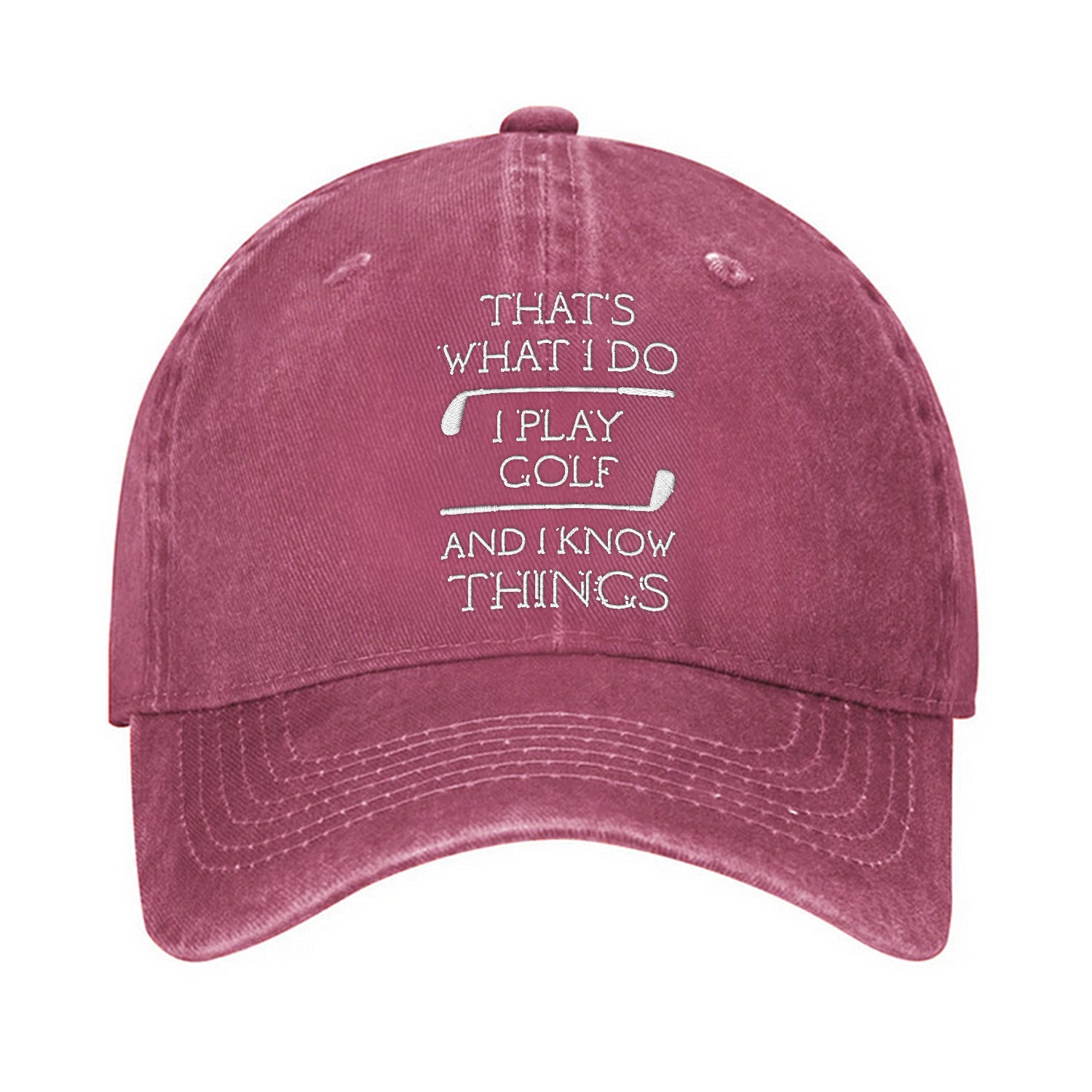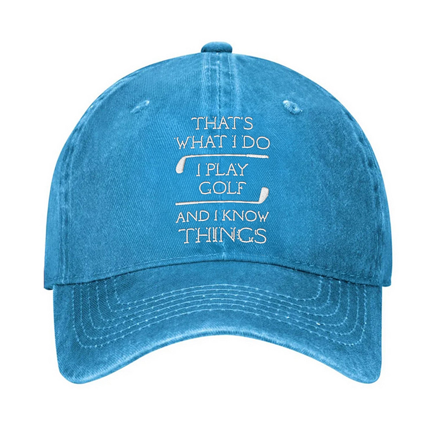 That's What I Do I Play Golf And I Know Things Embroidered Baseball Cap, Dad Golf Gift
