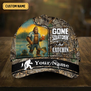 Gone Squatchin' And Catchin, Fishing Hunting Hat, Fishing Trucker Hat, Fishing Cap For Men, Fishing Gifts For Dad