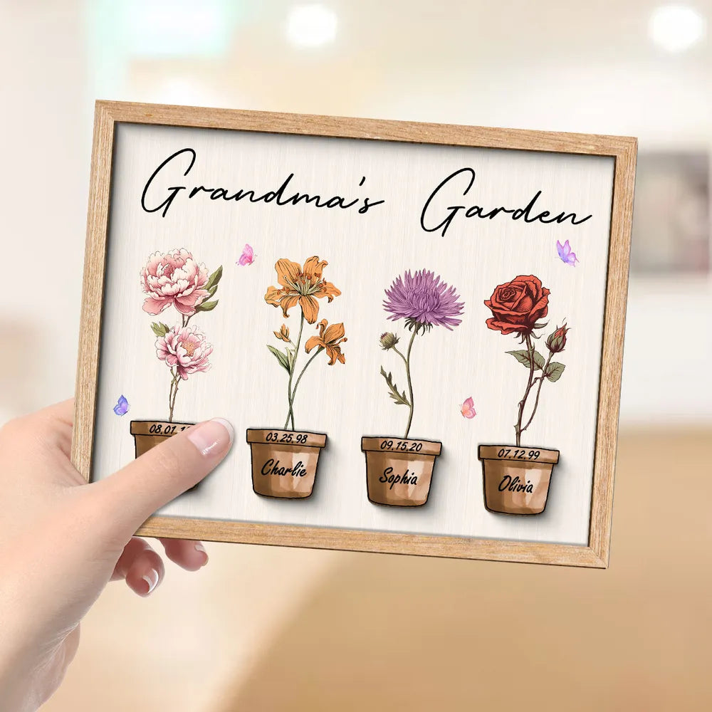 Grandma Garden Flowers Pots Personalized 2-Layer Wooden Plaque, Mother's Day Gift, Gift For Mom And Grandma