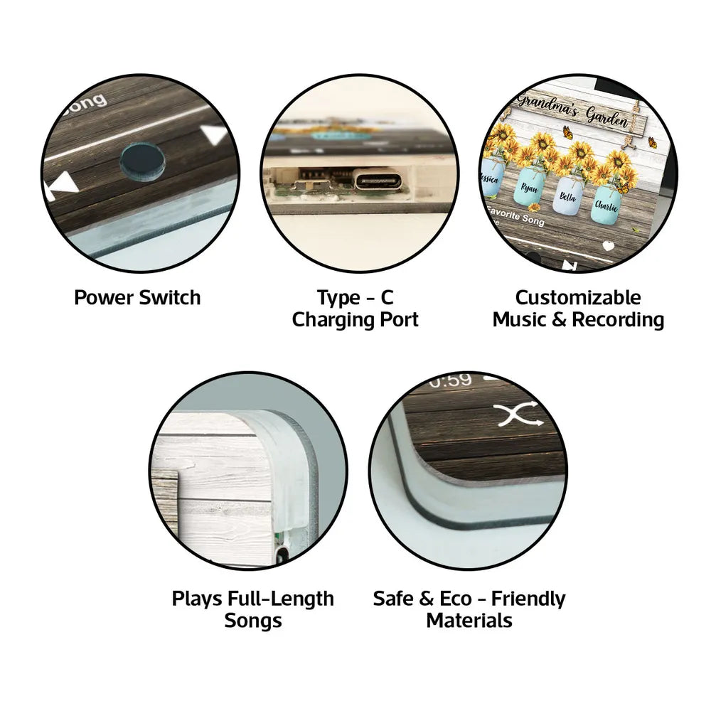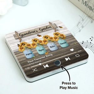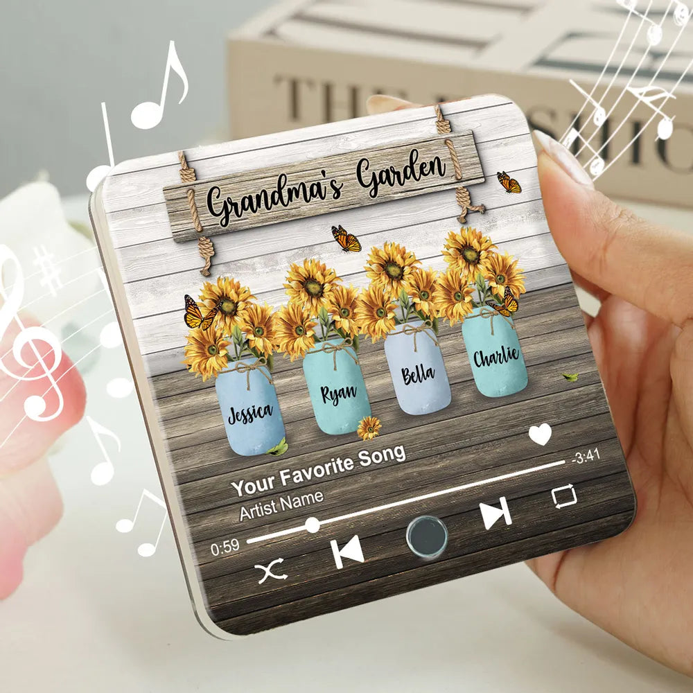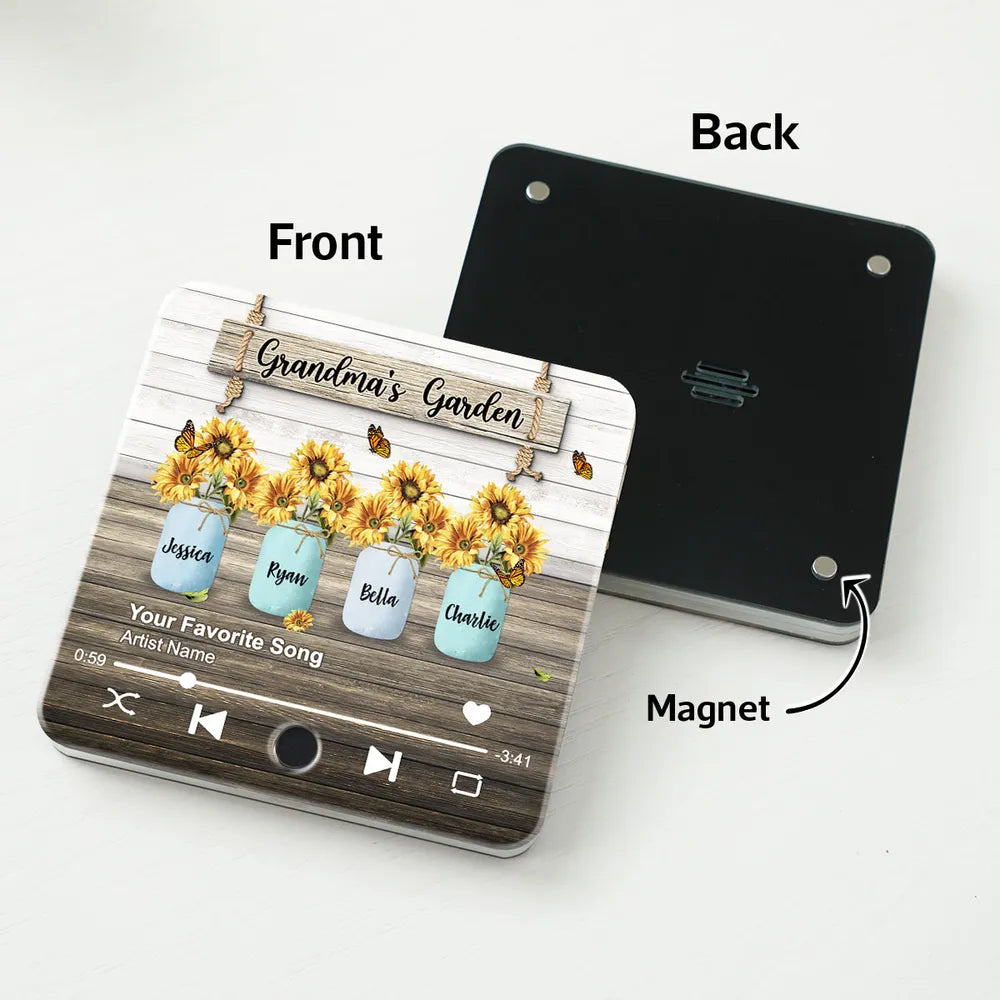 Grandma Garden Sunflower Vase Personalized Music Fridge Magnet, Custom Fridge Magnet, Gift For Family