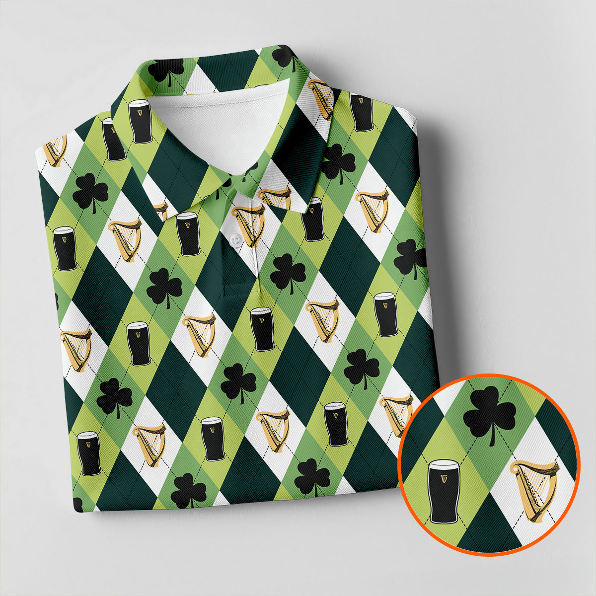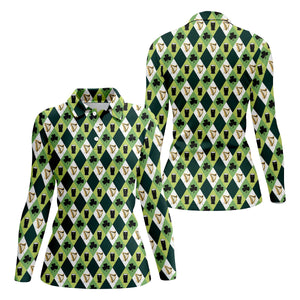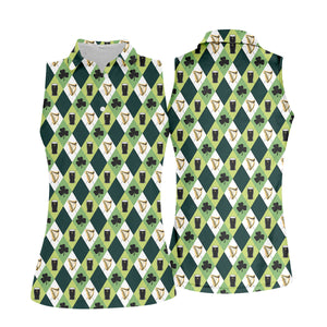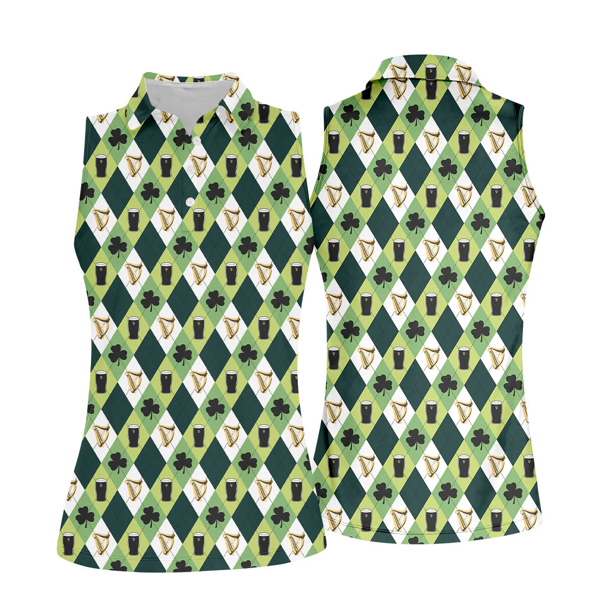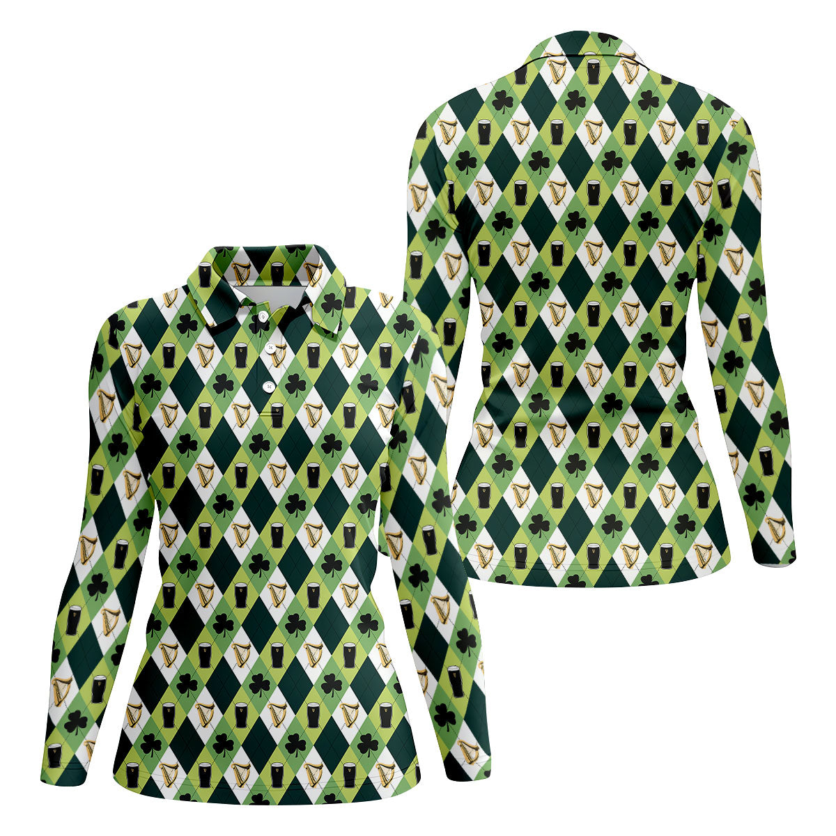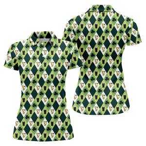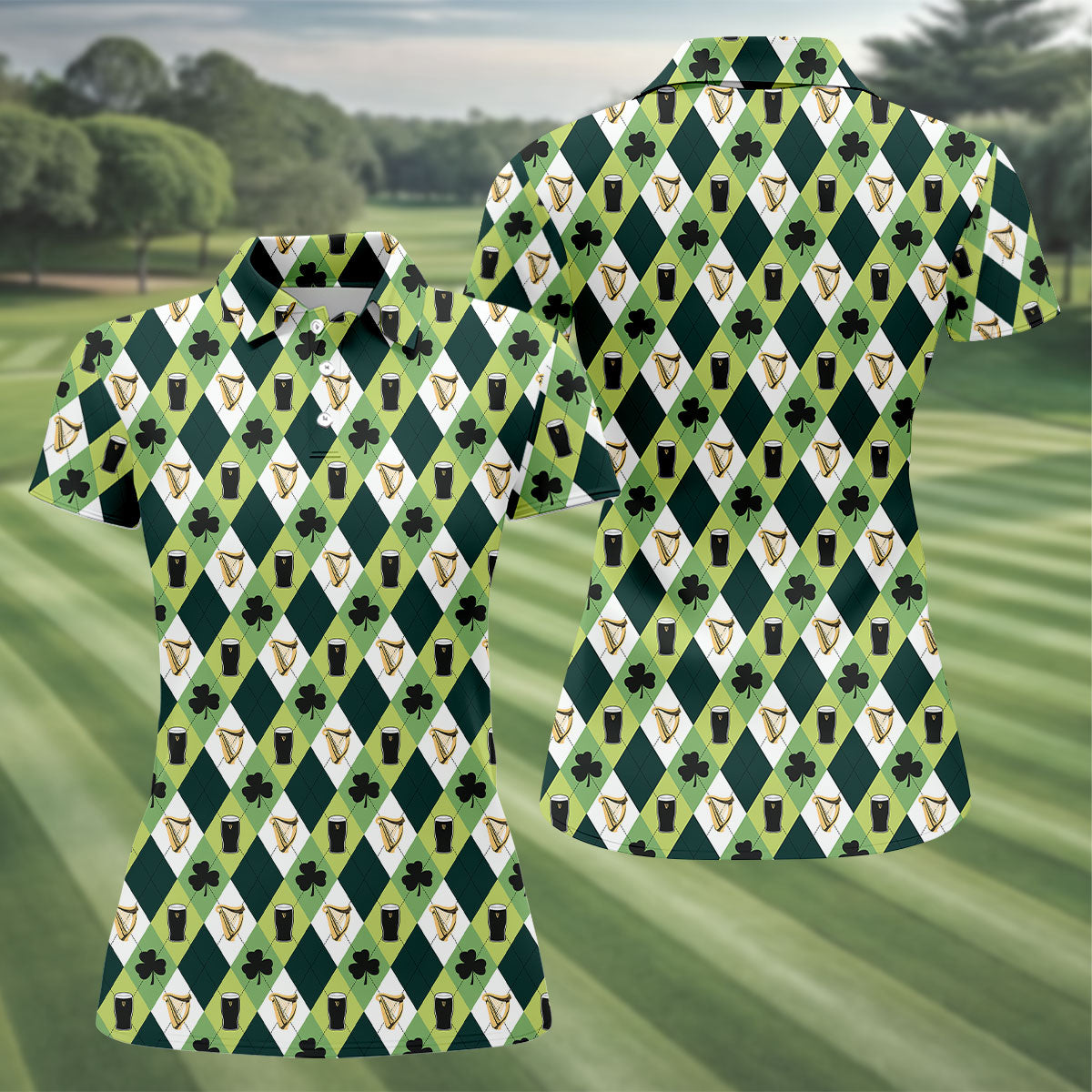 Green And White Argyle Pattern St Patrick's Day Golf Shirt, Women's Golf Shirts, Ladies Golf Polos