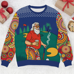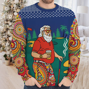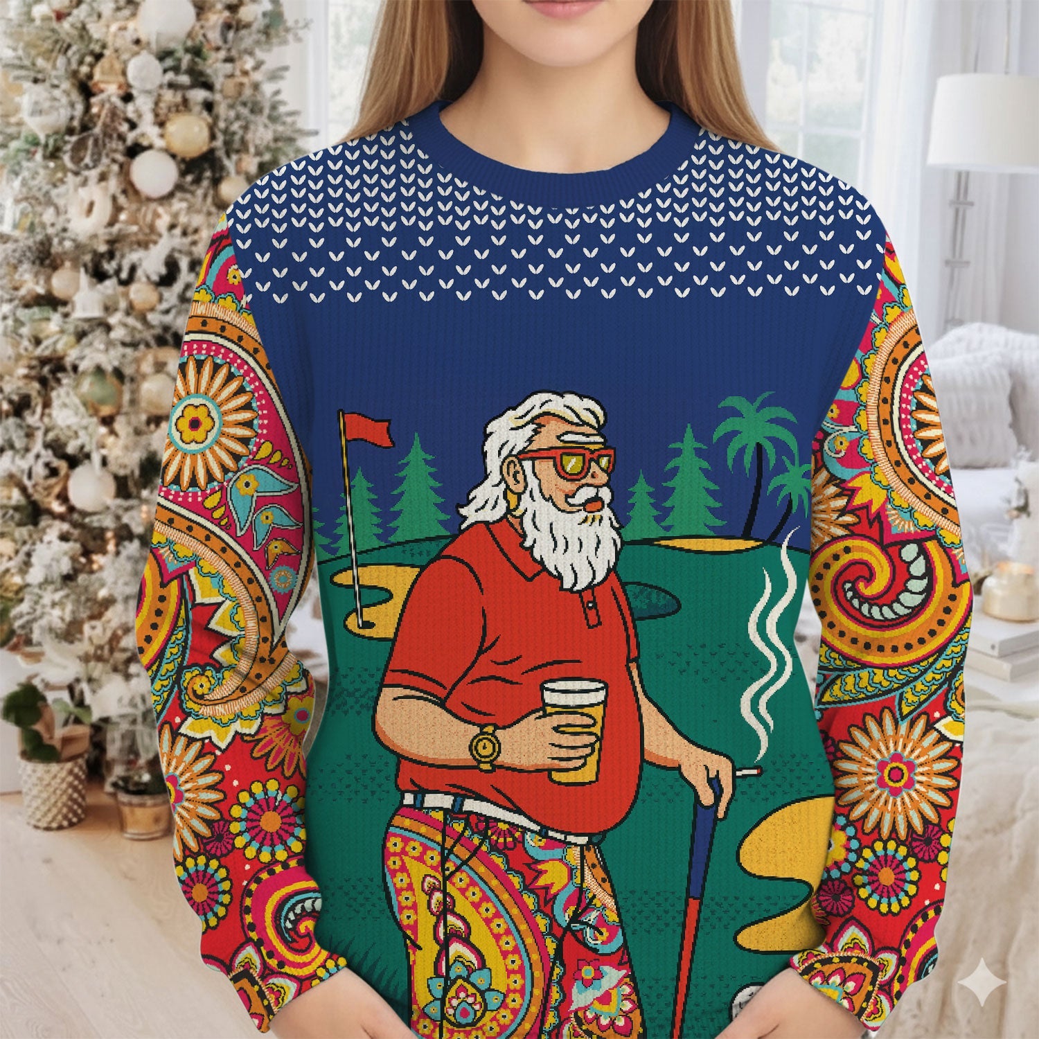 Forget boring fairway fashion — this sweater is what happens when Santa hooks one into the rough and decides to party instead. Perfect for ugly sweater contests, Christmas rounds, or that one office party where you swear you won’t talk about your handicap (but totally will).