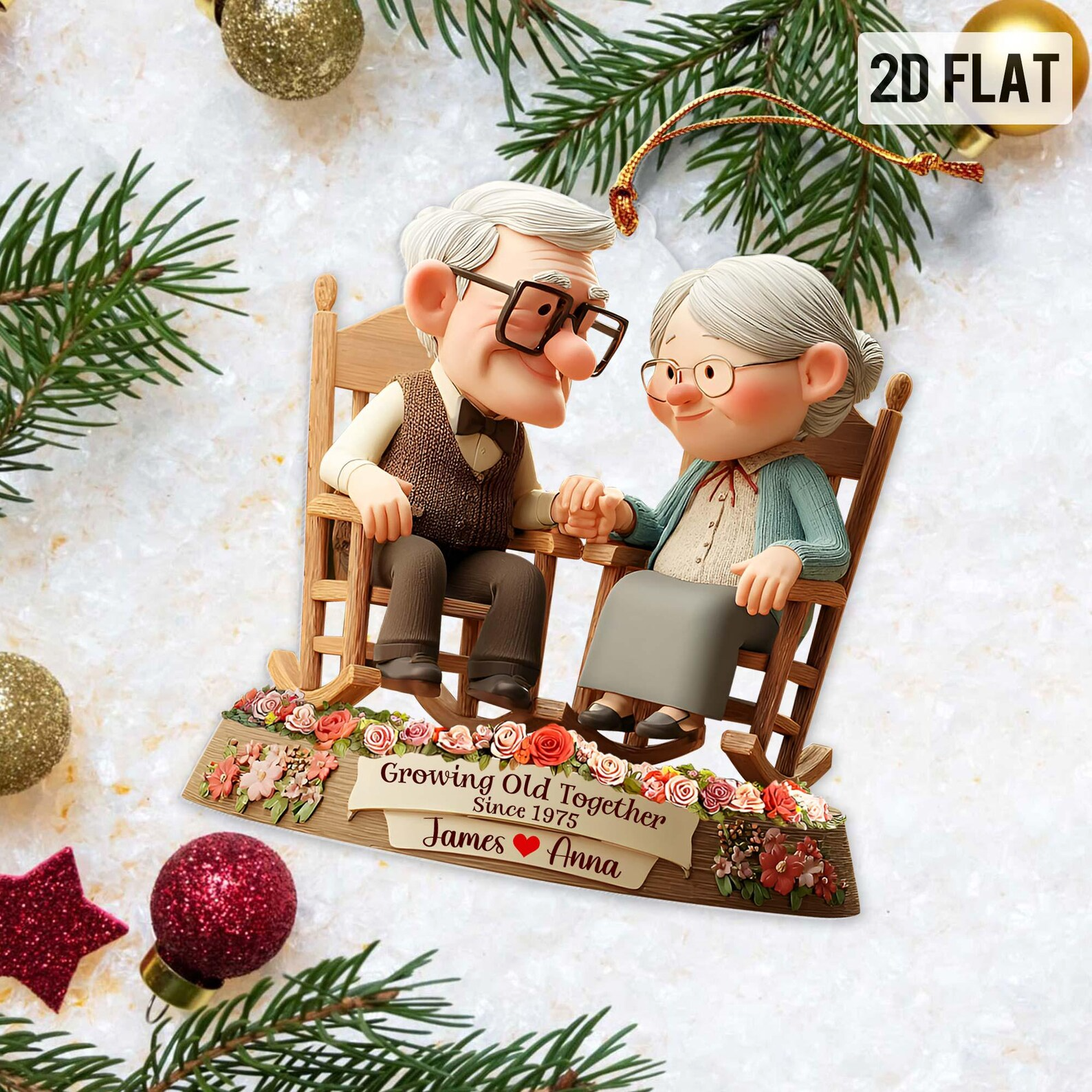 Growing Old Together Acrylic Ornament, Couple Anniversary Christmas Gifts For Parents, Couple Xmas Gift