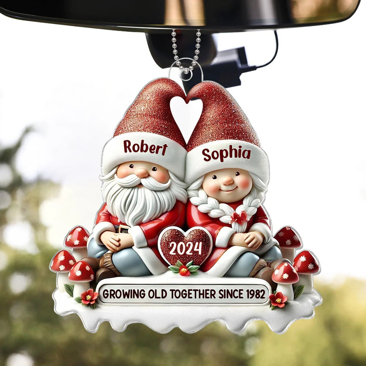 Growing Old Together Custom Gnome Gnome Couple Mirror Car Accessories, Valentine Gift For Couple