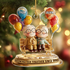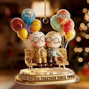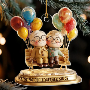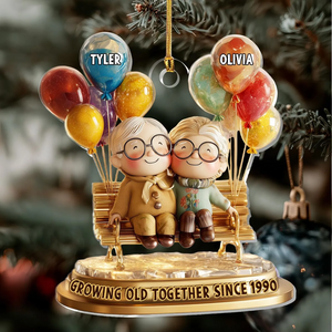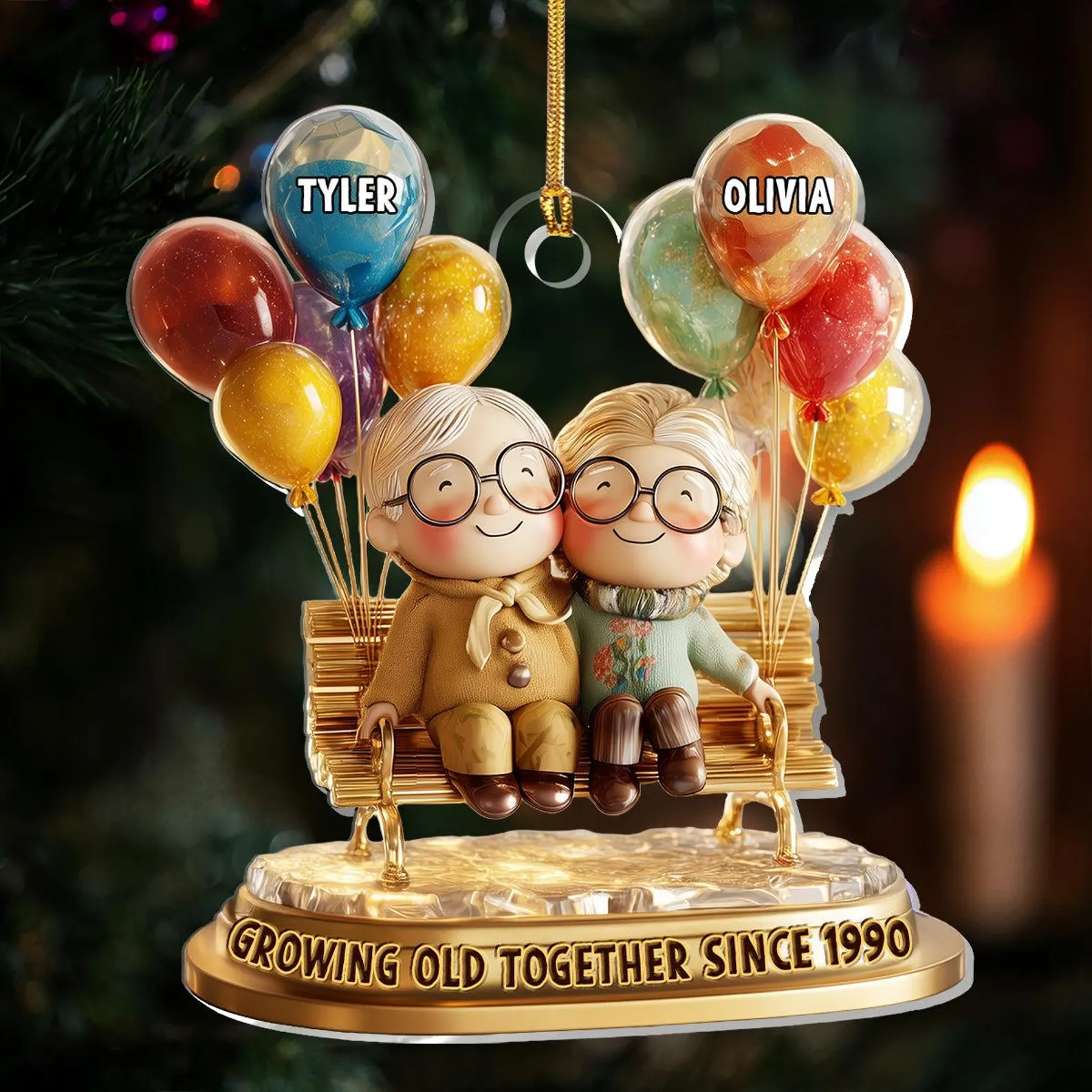 Growing Old Together Cute Old Couple Acrylic Ornament, Couple Anniversary Custom Xmas Ornament