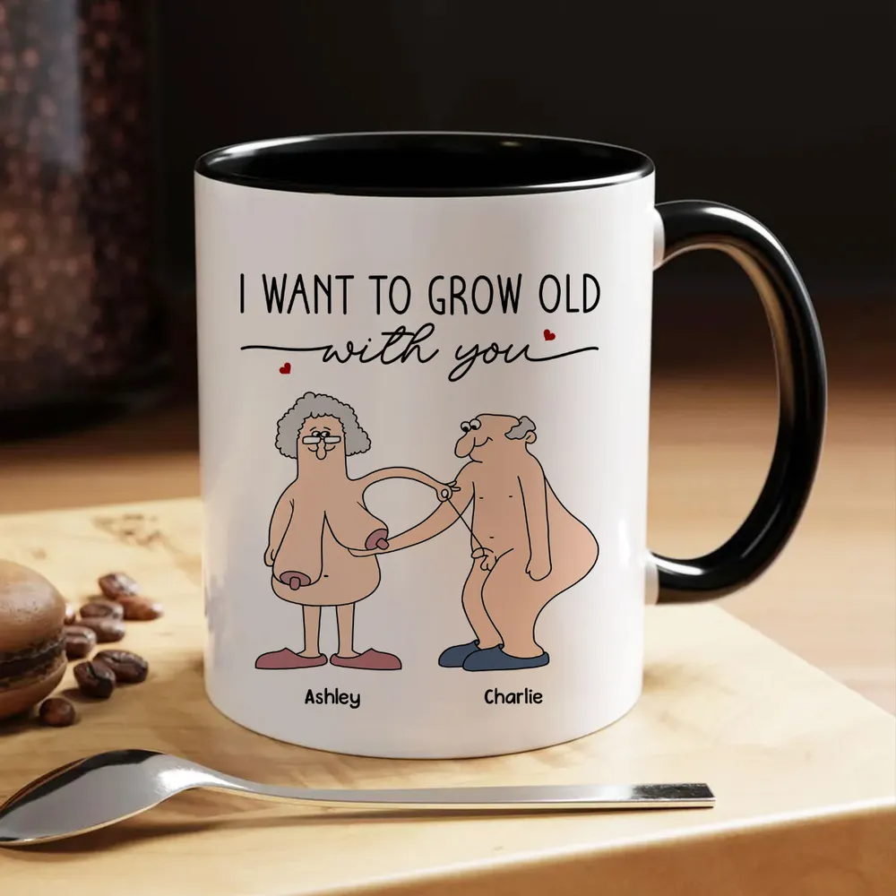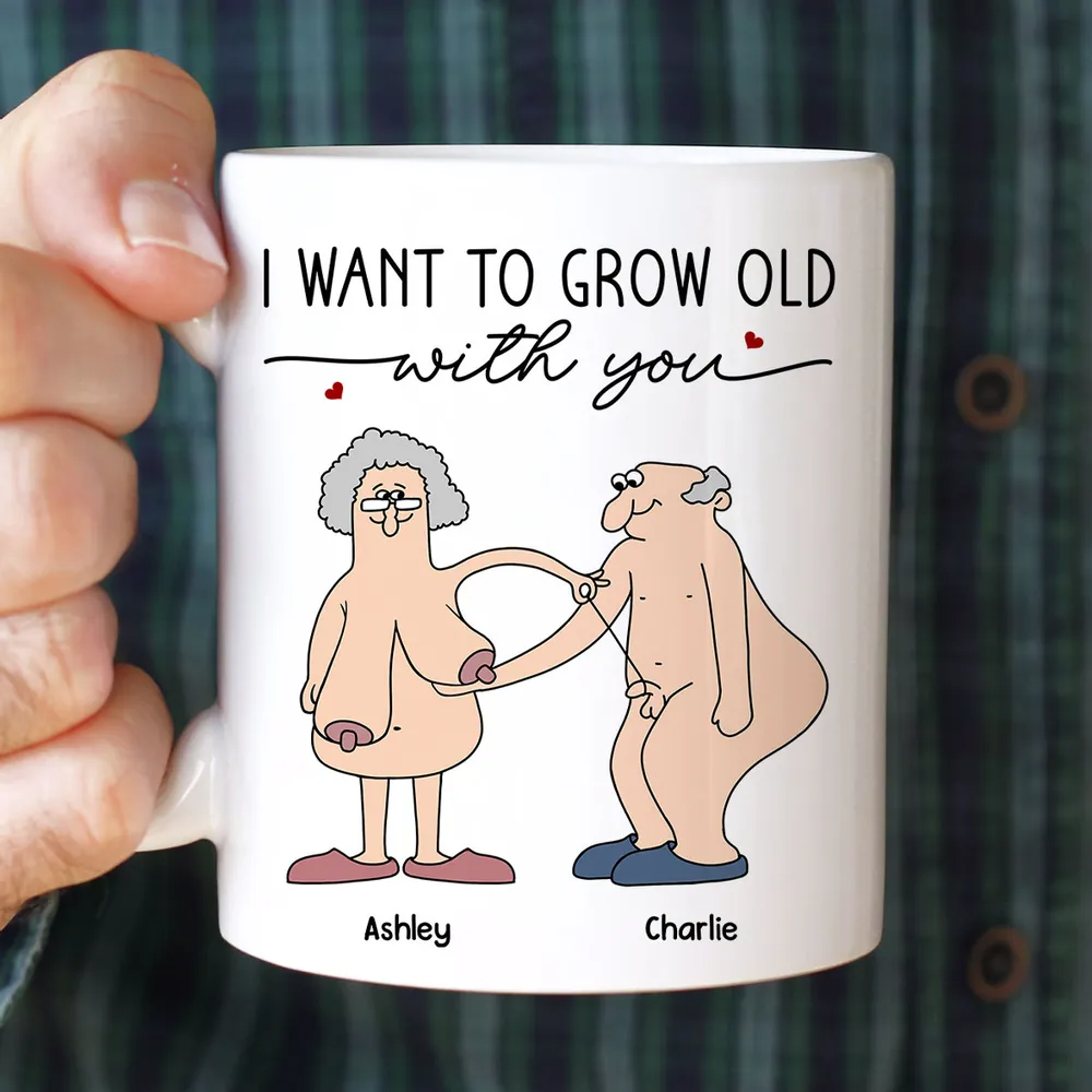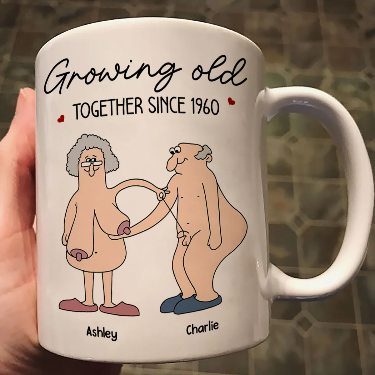 Growing Old Together Mug, Funny Couple Mug, Personalized Gifts for Husband, Old Couple Gift