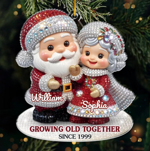 Growing Old Together Santa Claus Couple Acrylic Ornament, Couple Anniversary Custom Xmas Ornament, Couple Xmas Gift