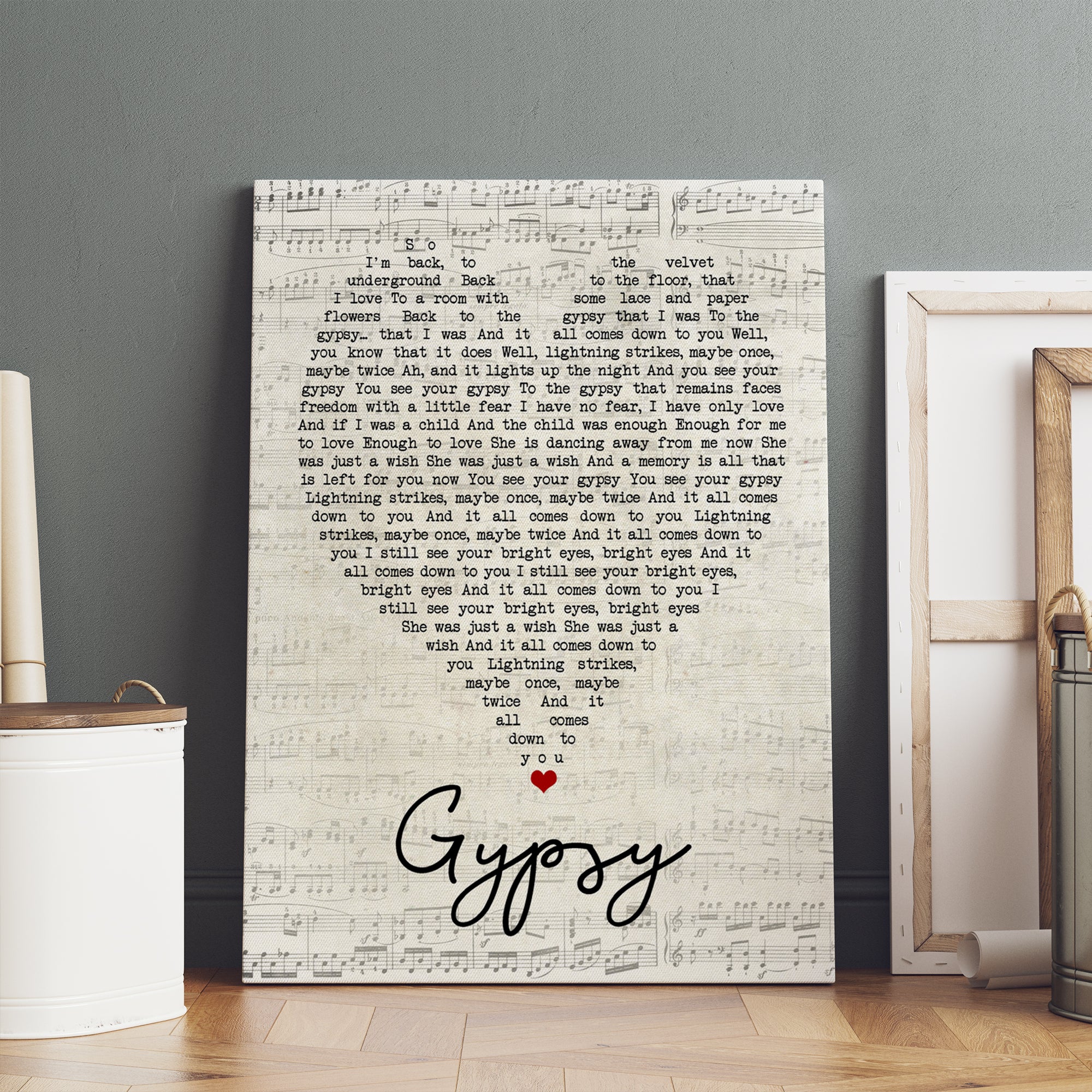 Gypsy Fleetwood Mac Script Heart Song Lyric Art Print Canvas Print Frames