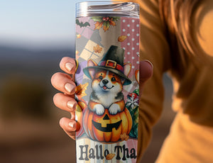 Hallothanksmas Corgi Cat 20oz 30oz Tumbler, Fall Thanksgiving Christmas, Halloween Costumes, Halloween Gifts