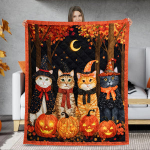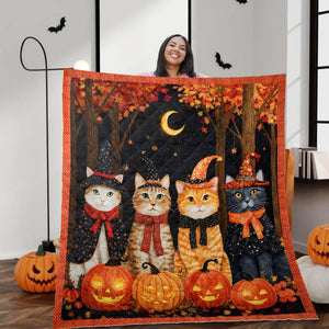 Halloween Cats Quilt Blanket, Witch Cat Throw Blanket, Spooky Season Decor