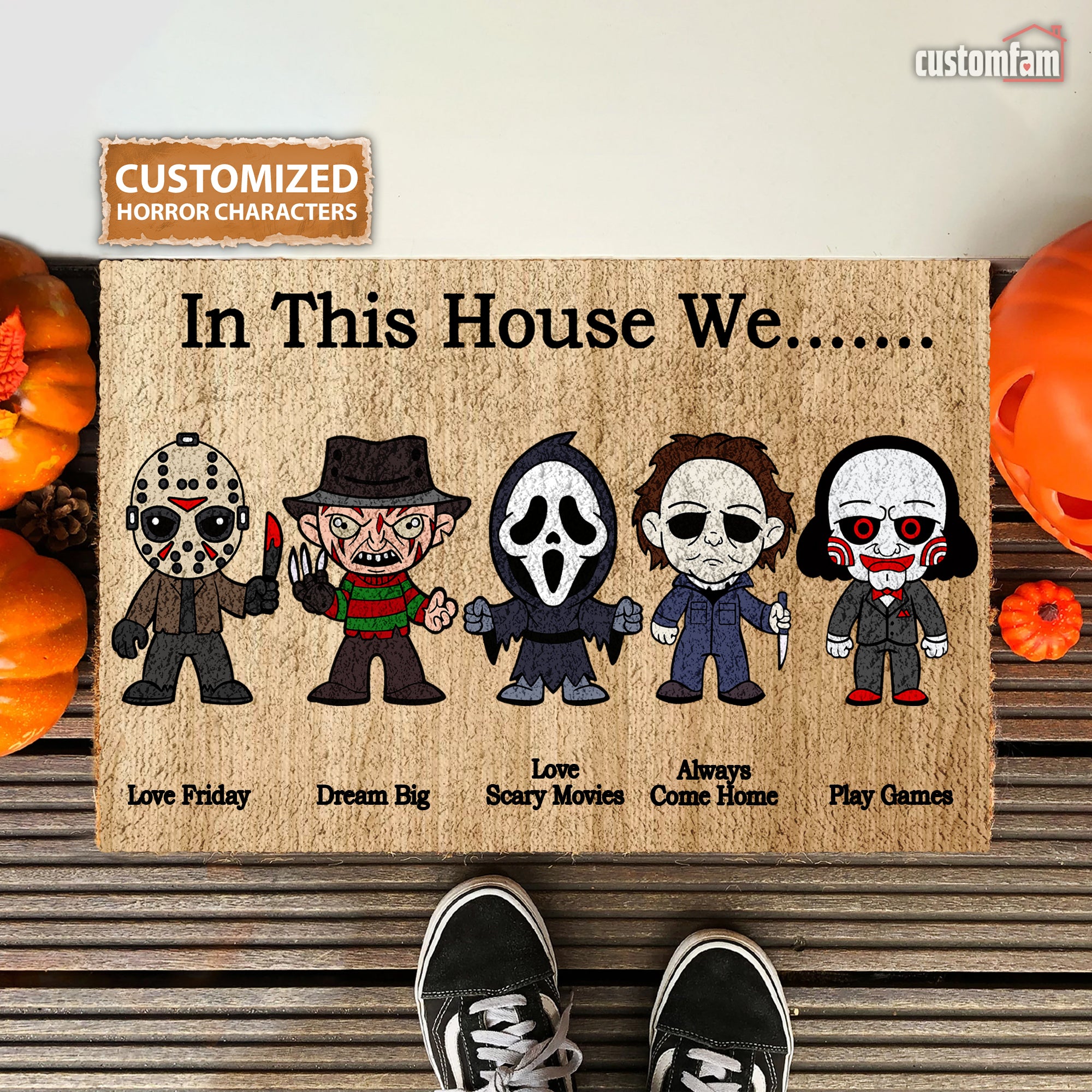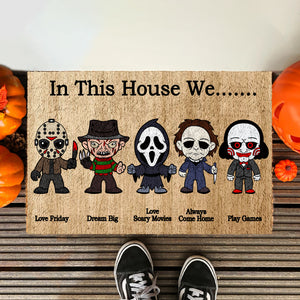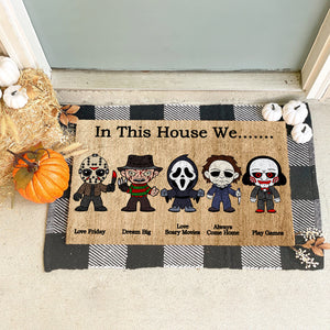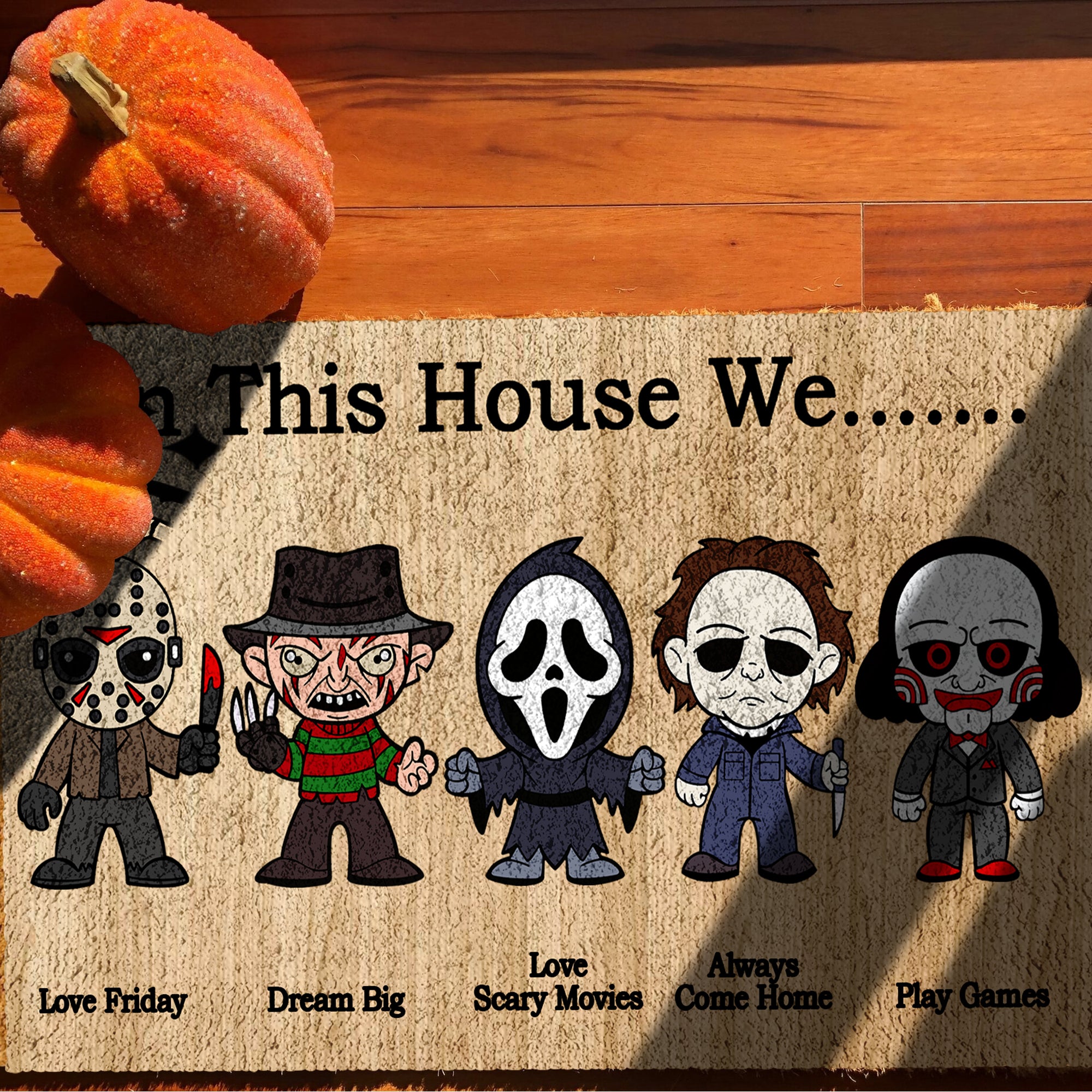 In This House We Horror Characters Doormat, Horror Movies Fans Gift, Halloween Decor