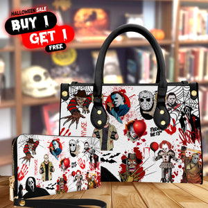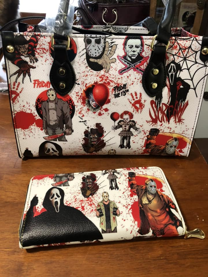Halloween Horror Movie Characters Leather Bag, Spooky Purse With Wallet