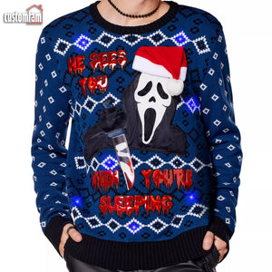 Halloween Horror Movie Light Up Ugly Christmas Sweater, Christmas Pullover