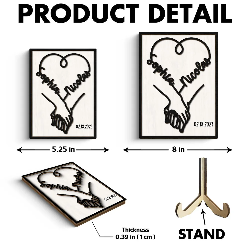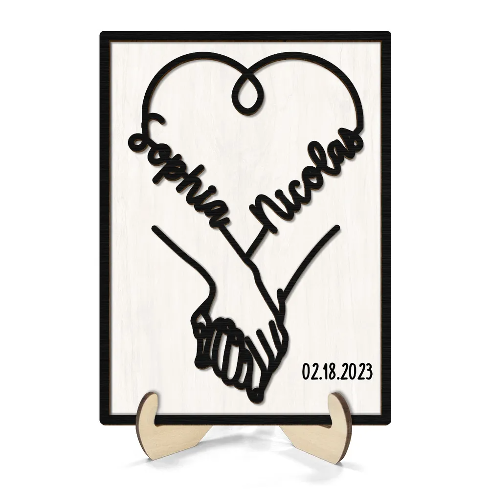 Hand In Hand Couple 2-Layer Wood Sign, Couple Valentines Gifts, Anniversary Gift for Couples