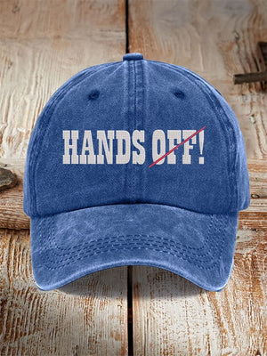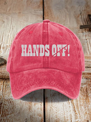 Features the playful phrase “Hands Off” expertly embroidered for a clean and stylish finish