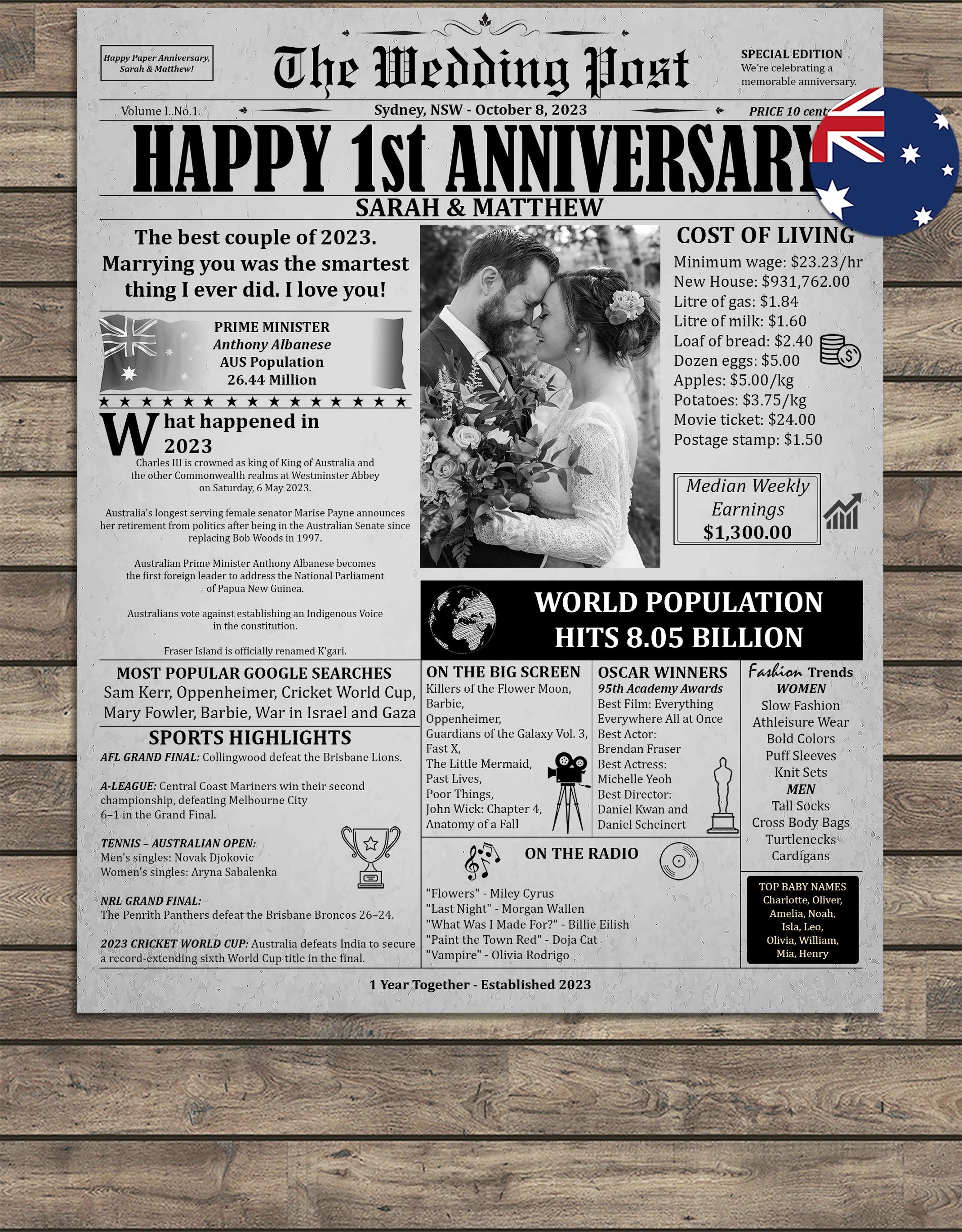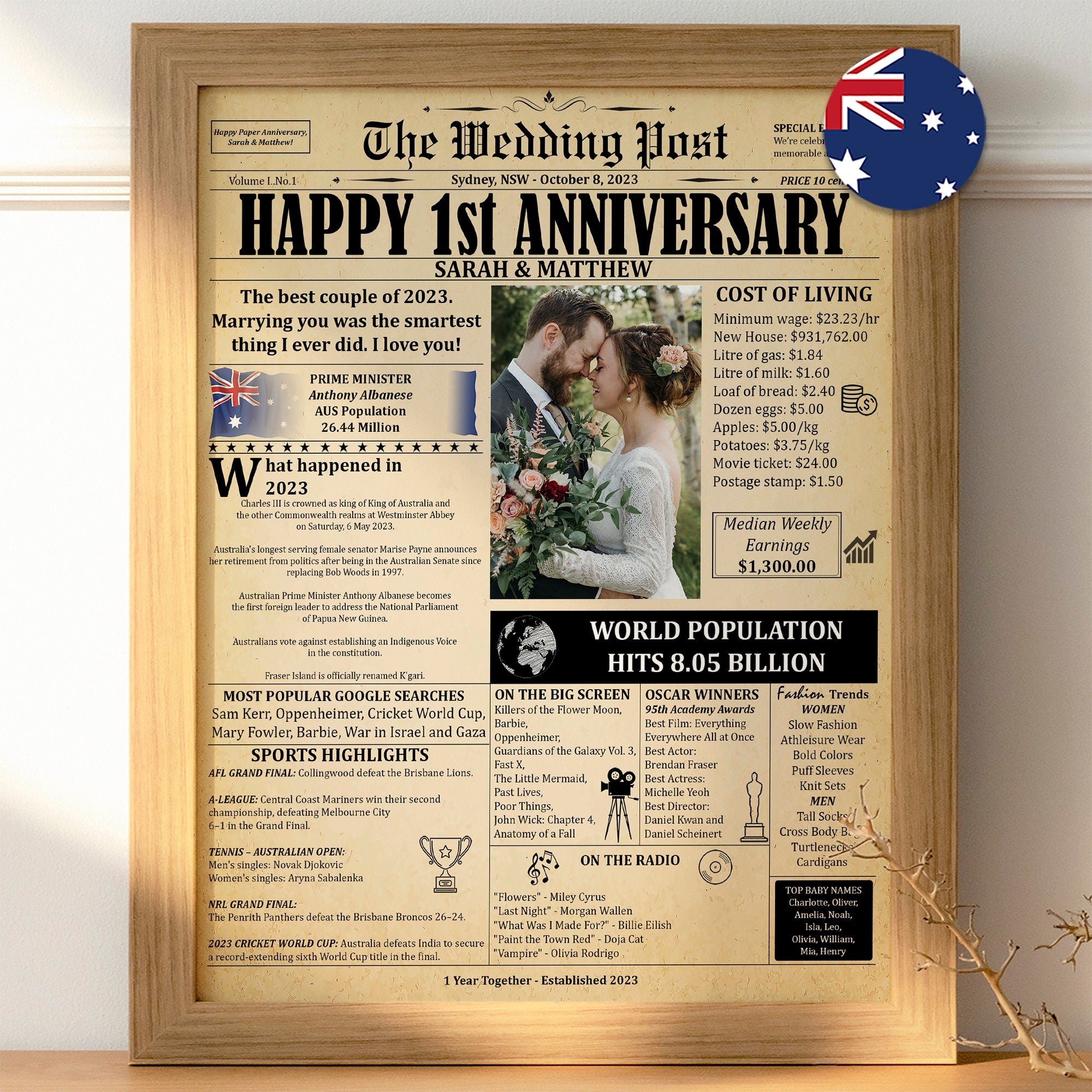 Happy 1st Anniversary Canvas Wall Art, Couple Wall Decor, Anniversary Gift For Couple