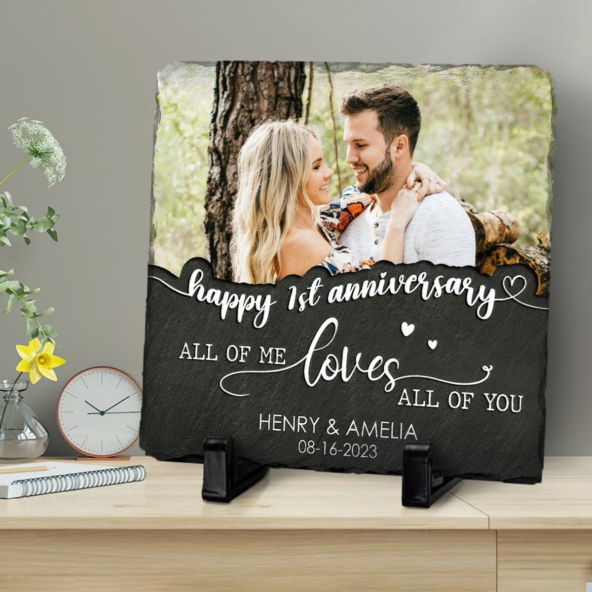 Happy Anniversary Personalized Rectangular Stone, Photo Slate, Anniversary Gift For Couple