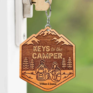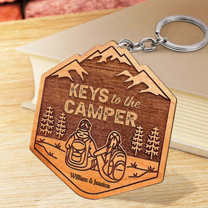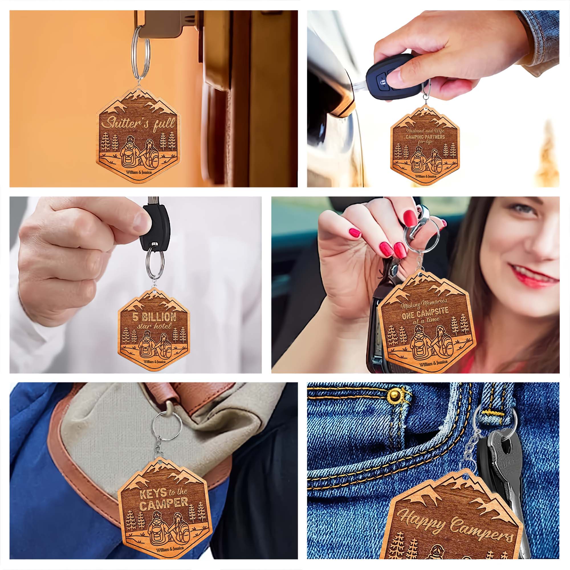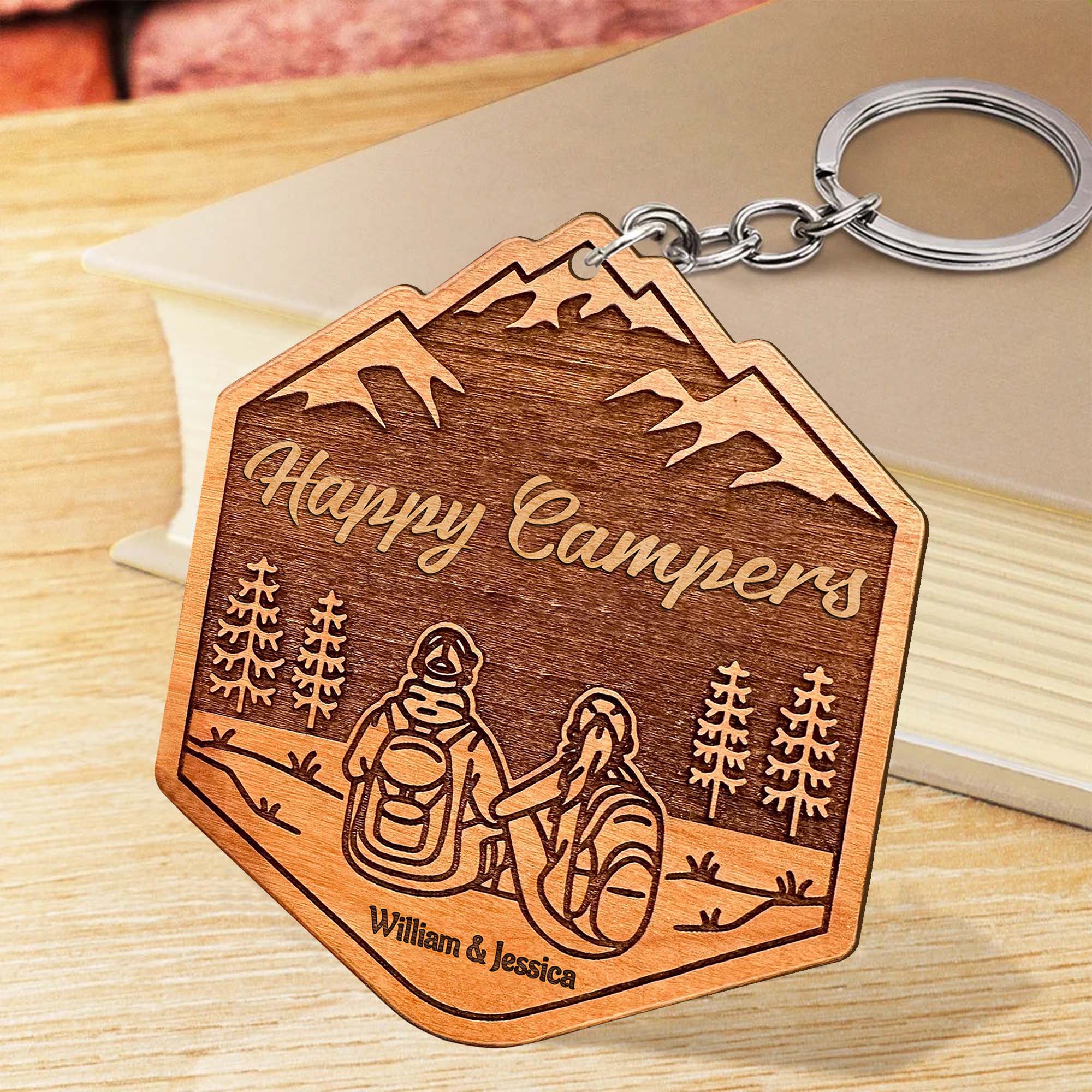 Happy Campers Personalized Couple Wood Keychain, Gift For Camping Lover, Valentine Couple Gift
