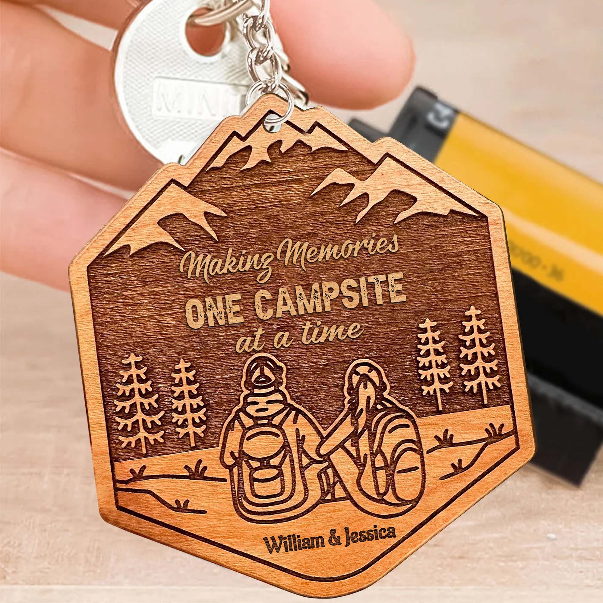 Whether celebrating a camping trip or gifting it to someone who loves the outdoors, the Making Memories One Campsite - Personalized Keychain is sure to bring joy and happiness with every use!