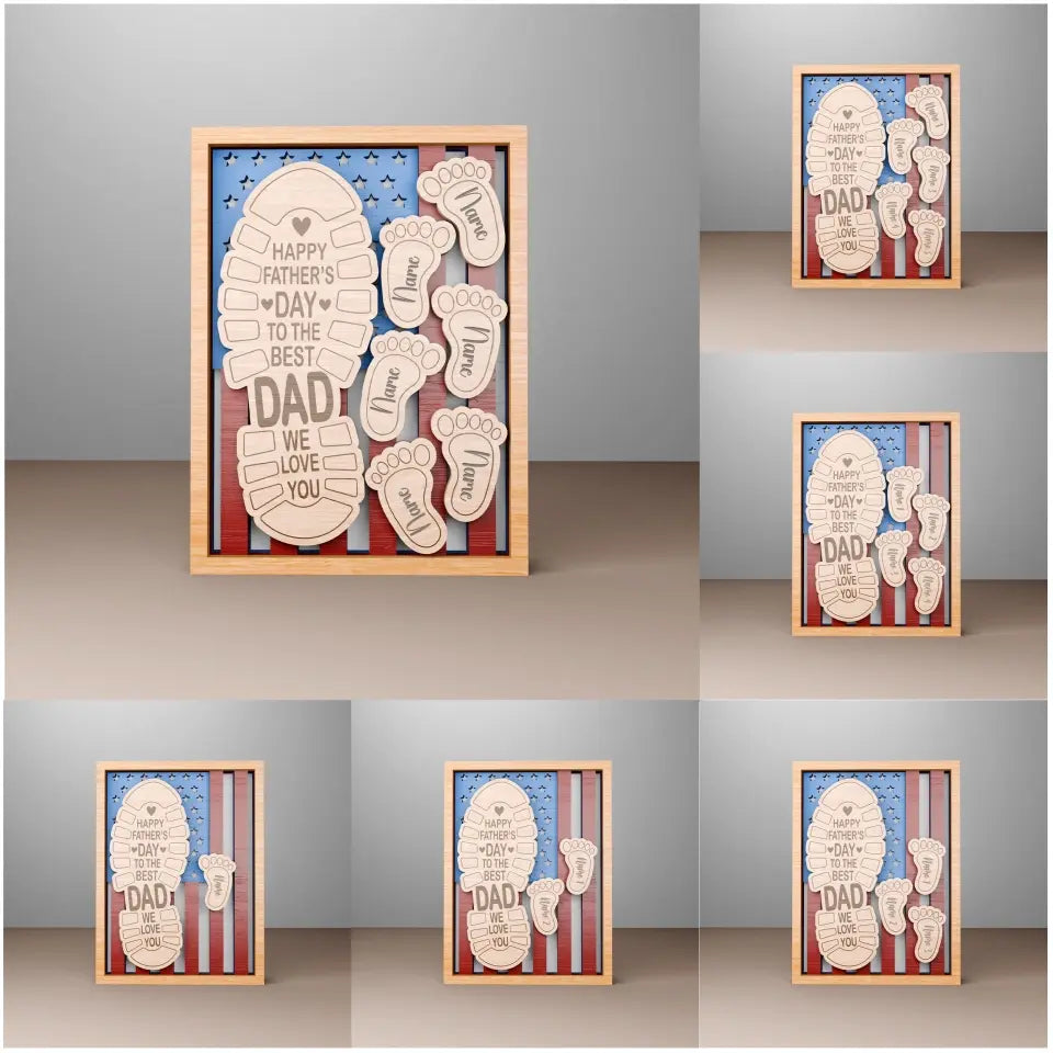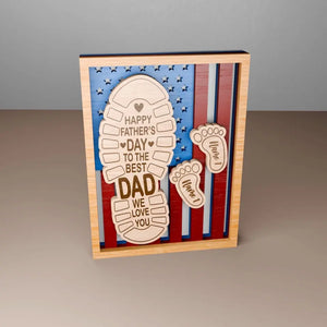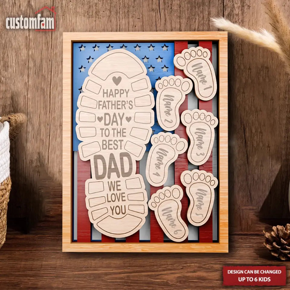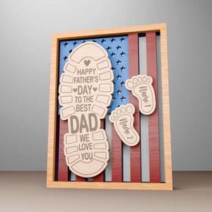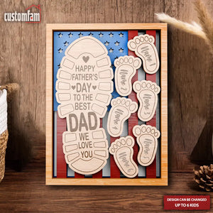 Happy Father's Day To The Best Dad We Love You Personalized 2 Layered Wooden Sign, Custom Footprints Frame Gift, Father's Day Gift, Gifts For Dad